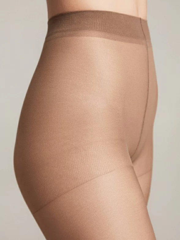 Классическая модель плотностью 15 den c усиленной верхней частью в виде шортиков, высокой талией и уплотненным мыском. Размеры 5-6 имеют большую клинообразную вставку с двумя швами сзади. Специальная технология вязки с использованием матированных оплетенных нитей придает изделию шелковистую фактуру и прочность.