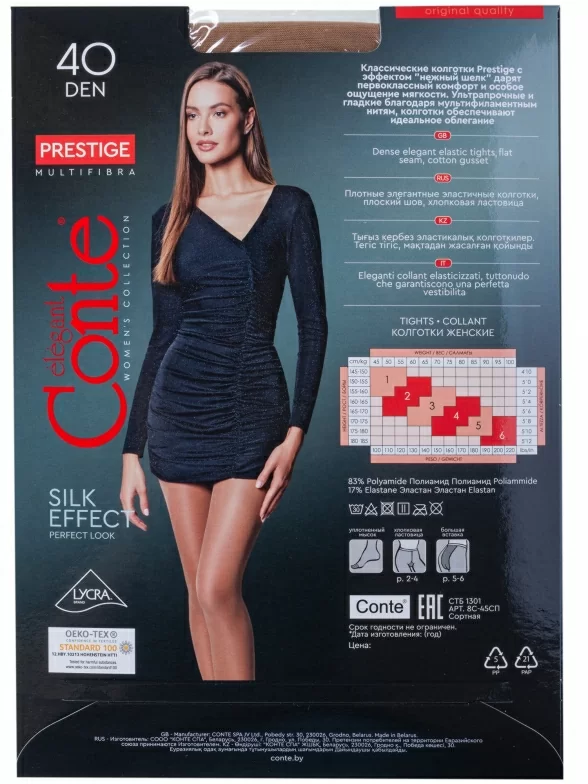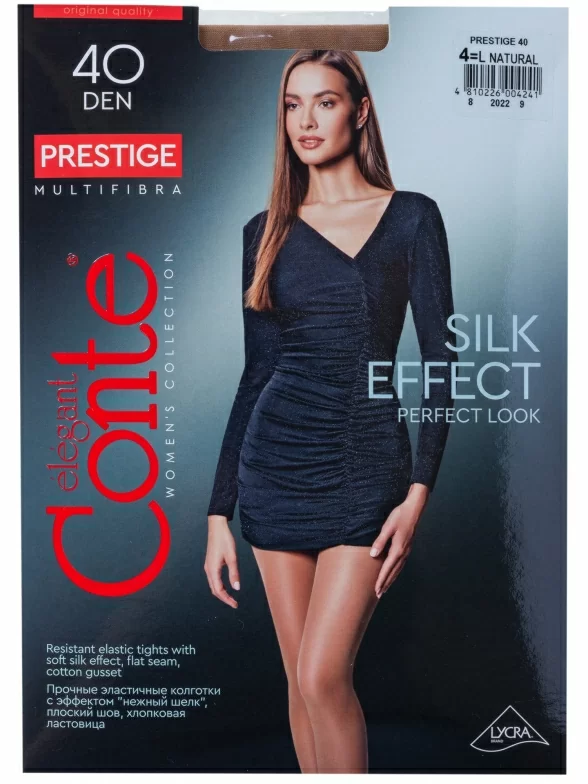 Женские колготки линейки Prestige с эффектом "нежного шелка" подчеркнут Ваш силуэт мягким благородным сиянием.
