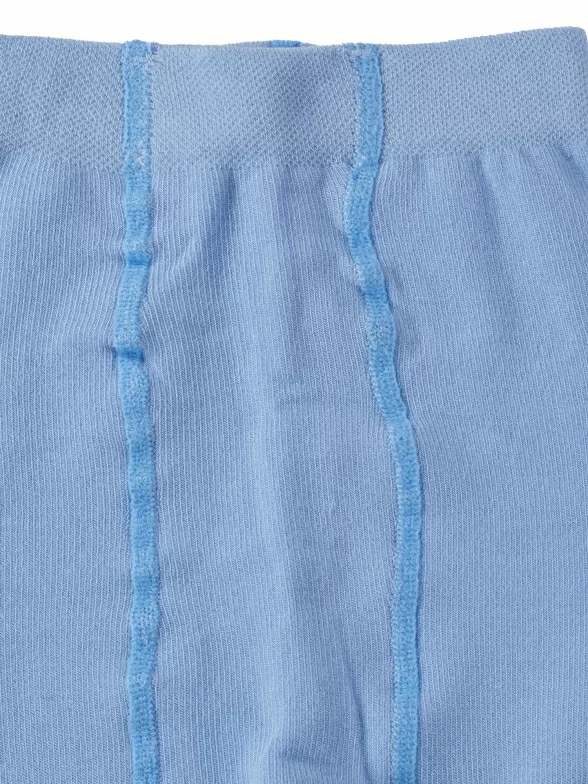 Однотонная модель без шортиков, с двубортным поясом средней ширины и плоскими швами (один спереди, два сзади), на мыске шов с ощутимым уплотнением. Изготовлены в Воронежской области из бамбукового волокна, известного своей мягкой фактурой, но из-за которой износостойкость в колготках не высока в сравнении с хлопком. Для ее повышения обязательно добавляются синтетические нити - в этом товаре полиамид, а входящий в состав эластан обеспечивает комфортную посадку. Из других преимуществ бамбука его гипоаллергенность и гигроскопичность (способность впитывать и испарять влагу). Процентное соотношение волокон: 80% бамбук, 15% полиамид, 5% эластан.