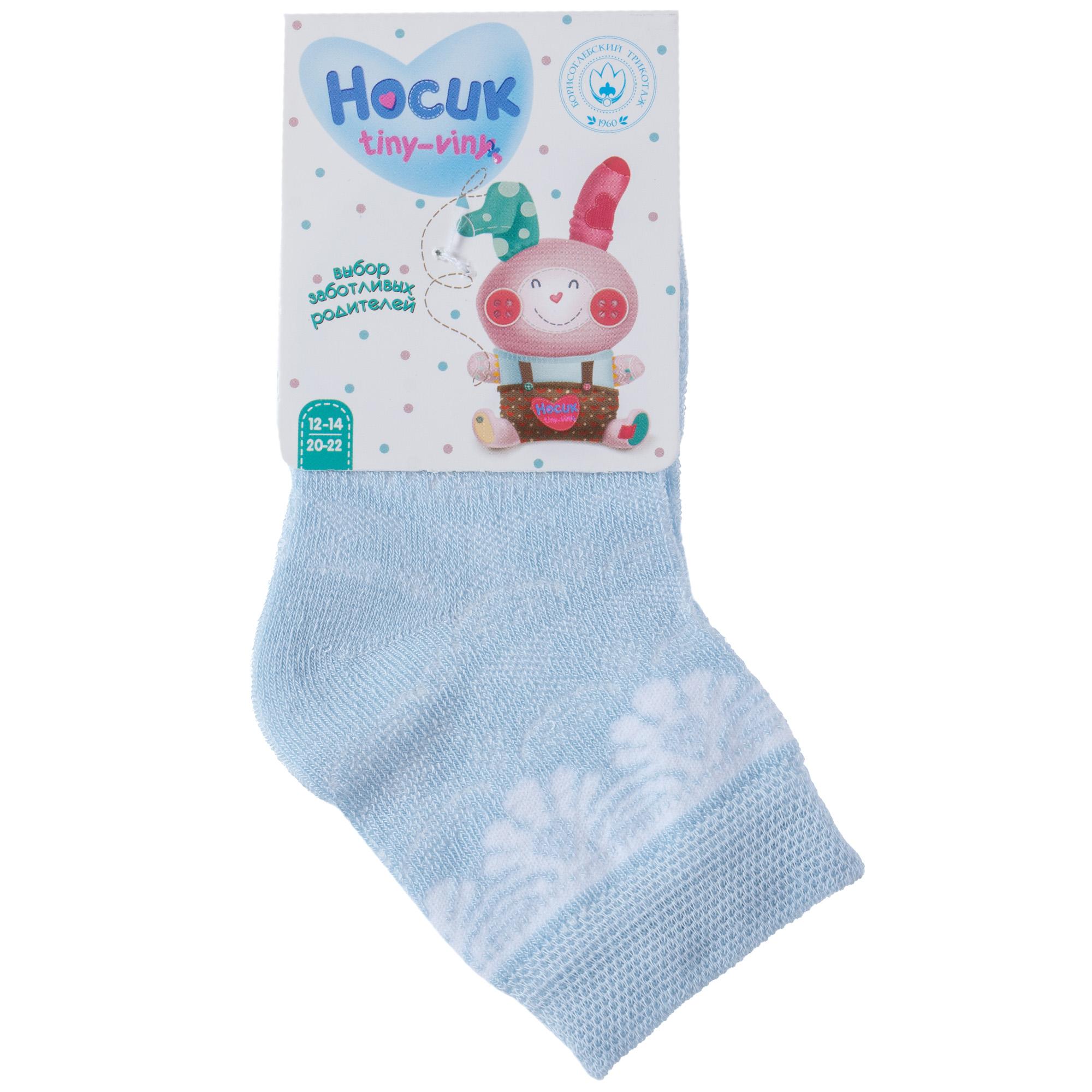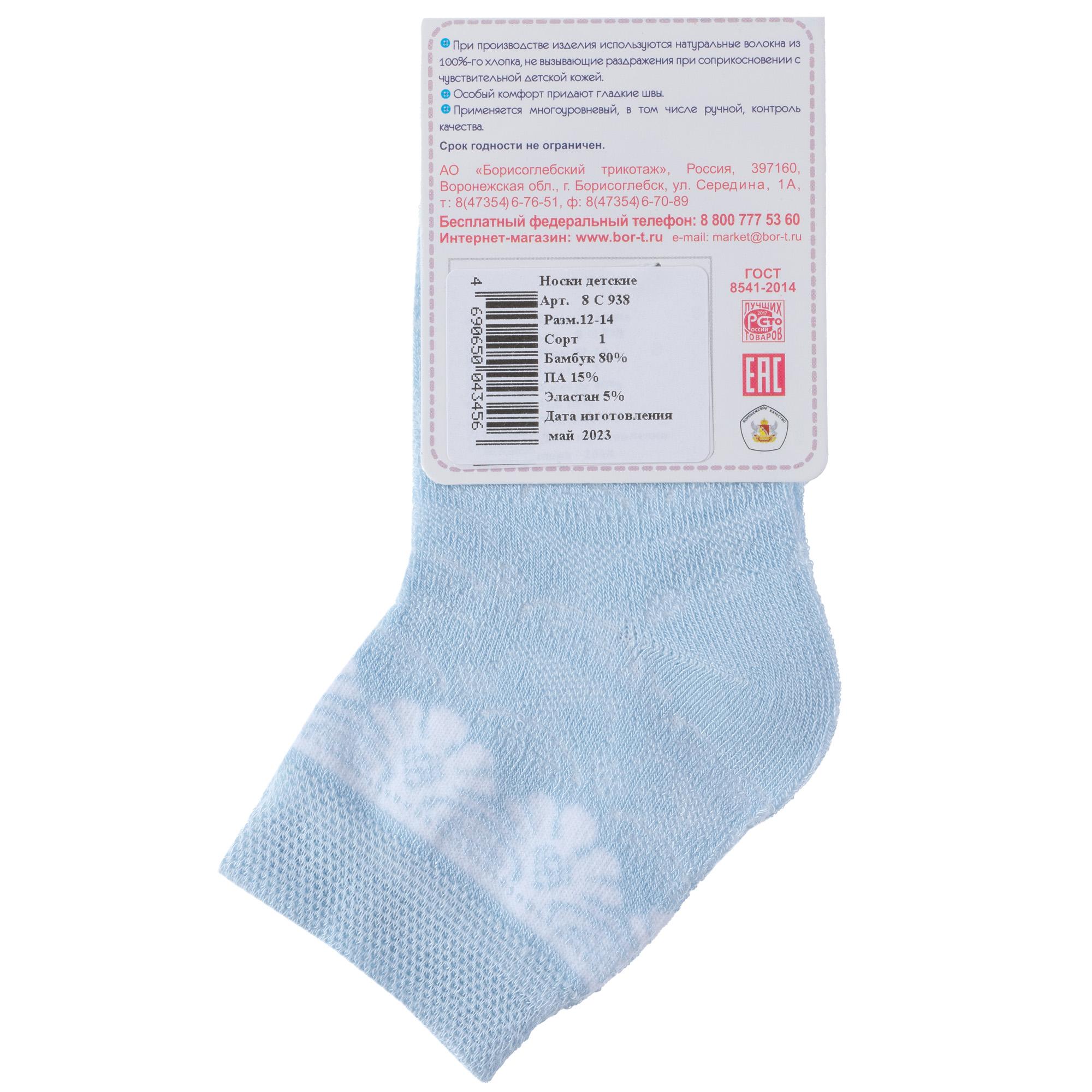 Летние укороченные детские носки, цвет голубой, ажурные, повседневные, шов обычный (не бесшовные), принт (рисунок): цветы / растения, с узором, состав: 80% бамбук, 15% полиамид, 5% эластан, арт. 8С938. Производитель «АО Борисоглебский трикотаж, Воронежская обл, Россия» под брендом «Борисоглебский трикотаж».