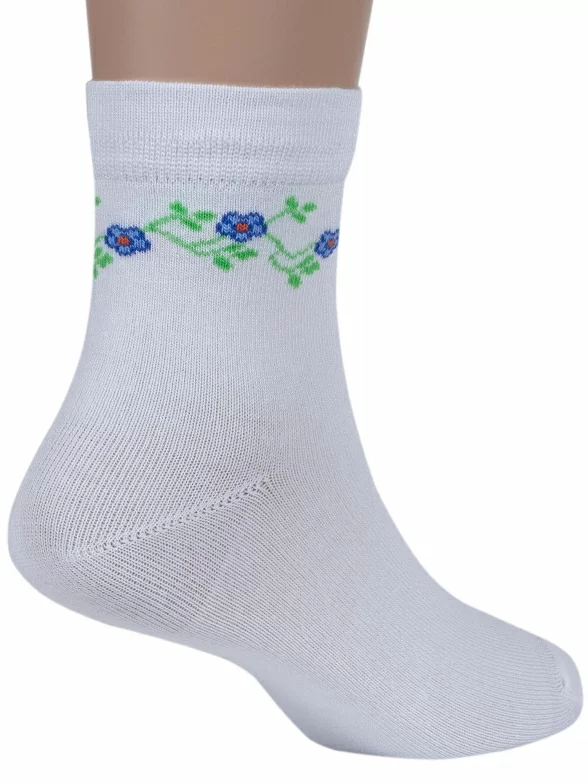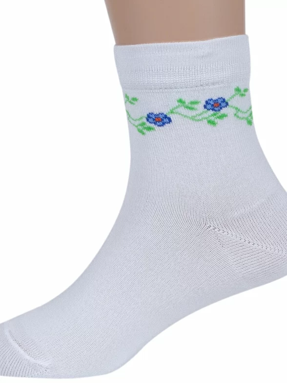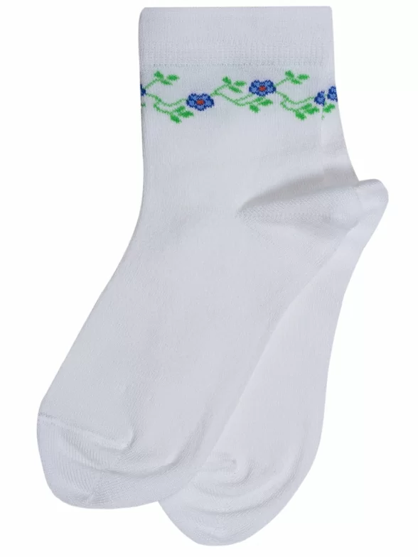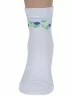Летние или круглогодичные укороченные детские носки, цвет белый, повседневные, шов обычный (не бесшовные), принт (рисунок): цветы / растения, небольшой рисунок, состав: 90% бамбук, 7% полиамид, 3% эластан (лайкра), арт. Л59. Производитель «ИП Мурзаков В.А., Ставропольский край, Россия» под брендом «Lorenzline».