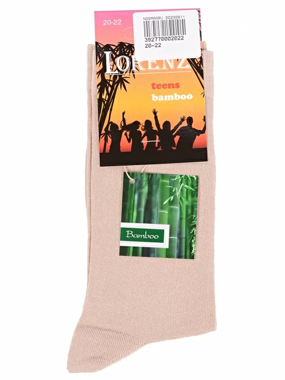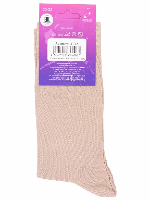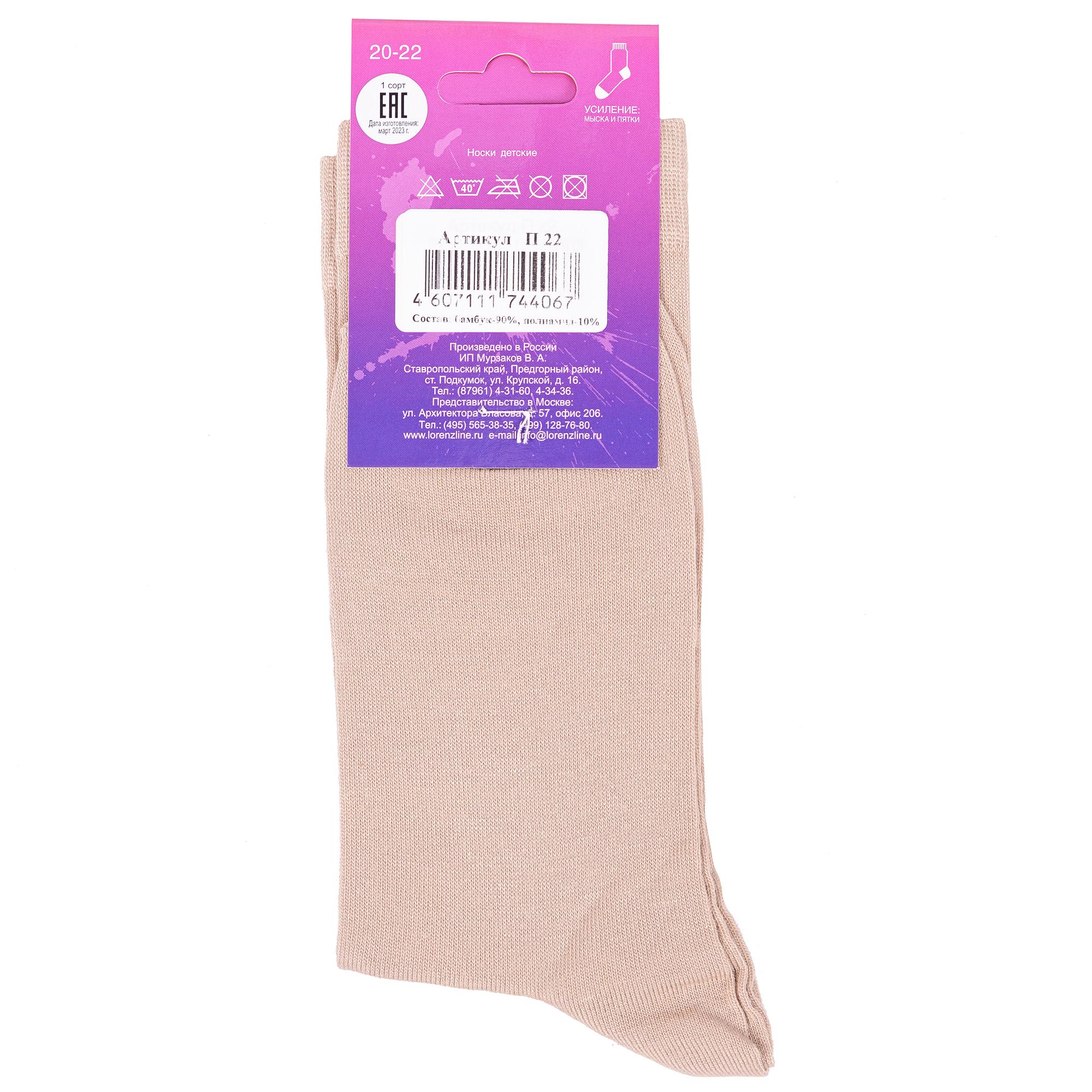 Межсезонные или летние средней длины детские носки, цвет бежевый, классические, возможно бесшовные, принт (рисунок): однотонный, без рисунков/узоров, состав: 90% бамбук, 10% полиамид, арт. П22. Производитель «ИП Мурзаков В.А., Ставропольский край, Россия» под брендом «Lorenzline».
