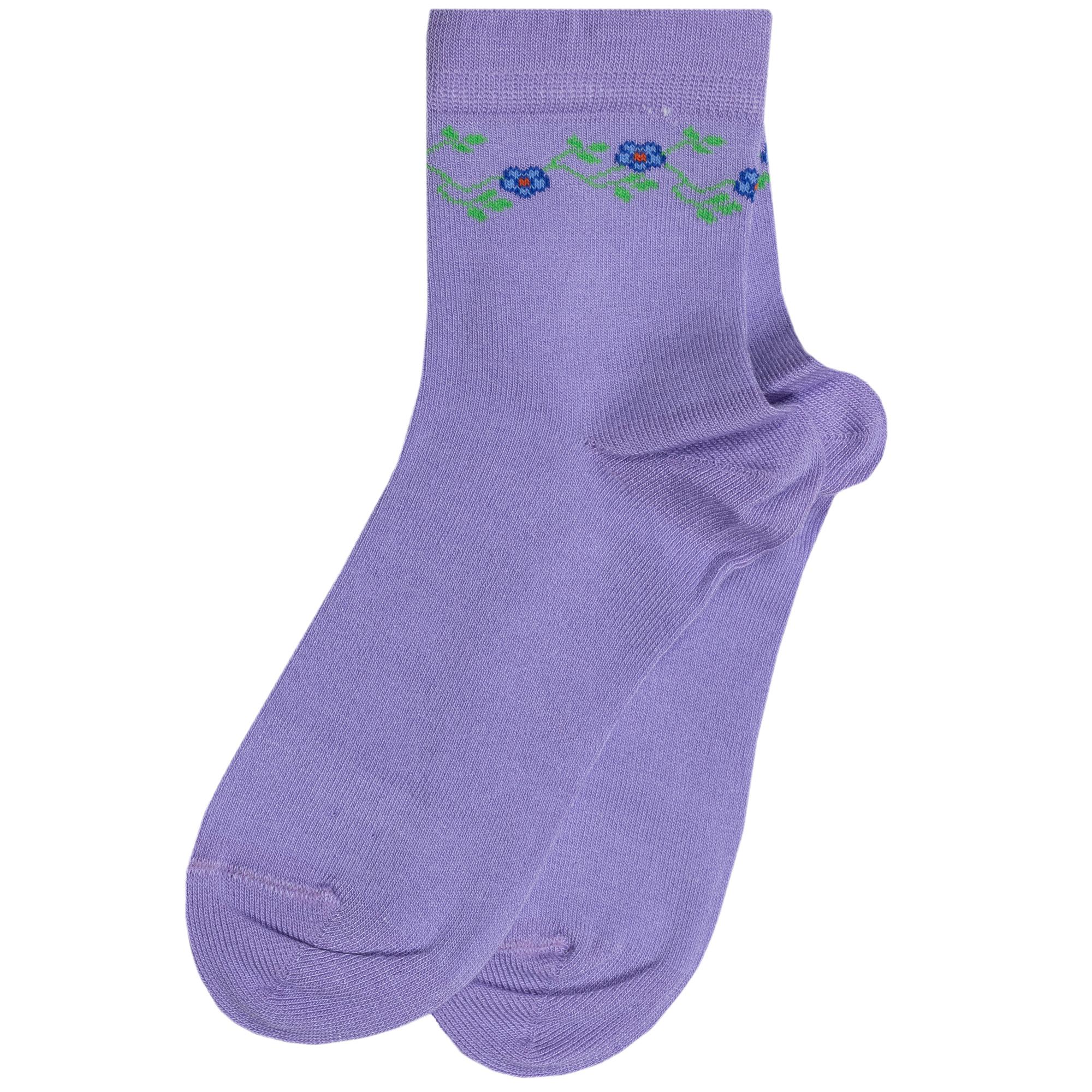 Летние или круглогодичные укороченные детские носки, цвет сиреневый, повседневные, шов обычный (не бесшовные), принт (рисунок): цветы / растения, небольшой рисунок, состав: 90% бамбук, 7% полиамид, 3% эластан (лайкра), арт. Л59. Производитель «ИП Мурзаков В.А., Ставропольский край, Россия» под брендом «Lorenzline».