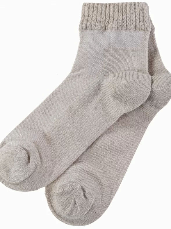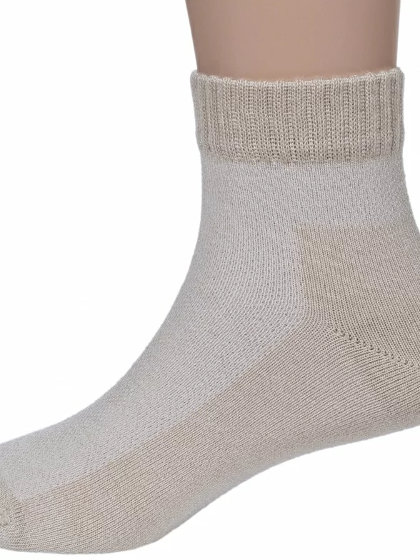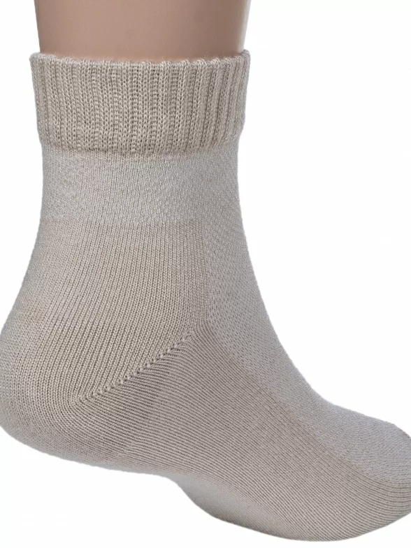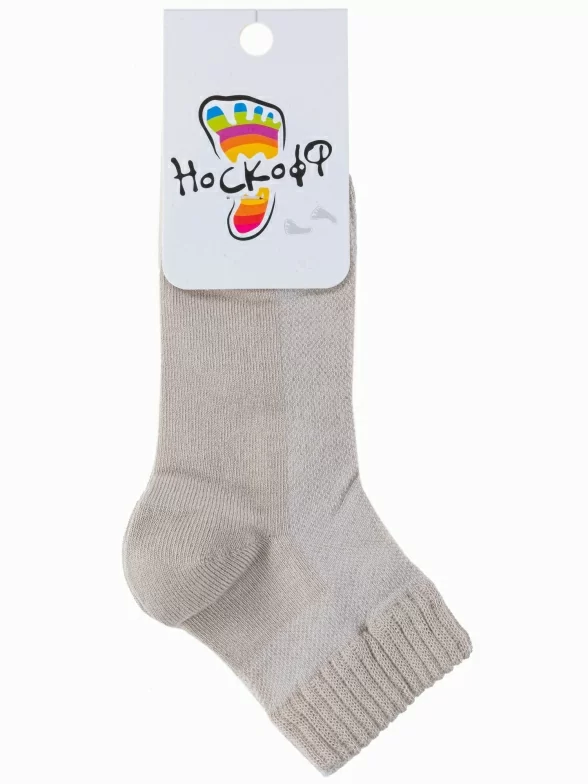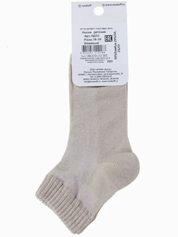 Летние короткие детские носки, цвет бежевый, в сеточку, спортивные, классические, шов обычный (не бесшовные), принт (рисунок): однотонный, состав: 68% бамбук, 29% полиамид, 3% полиуретан (эластан), арт. НД10. Производитель «Носкофф» Россия под брендом «Носкофф (алсу)».