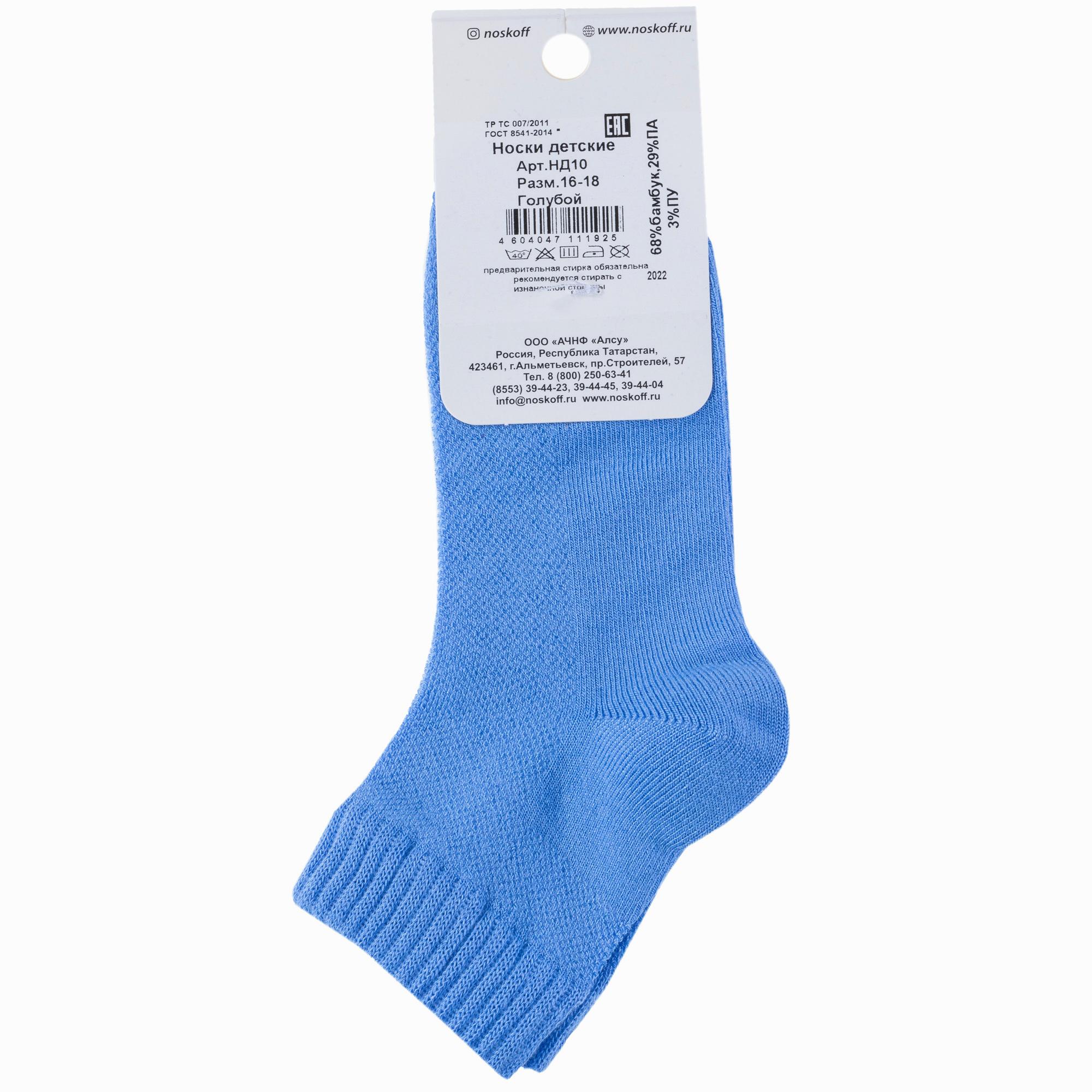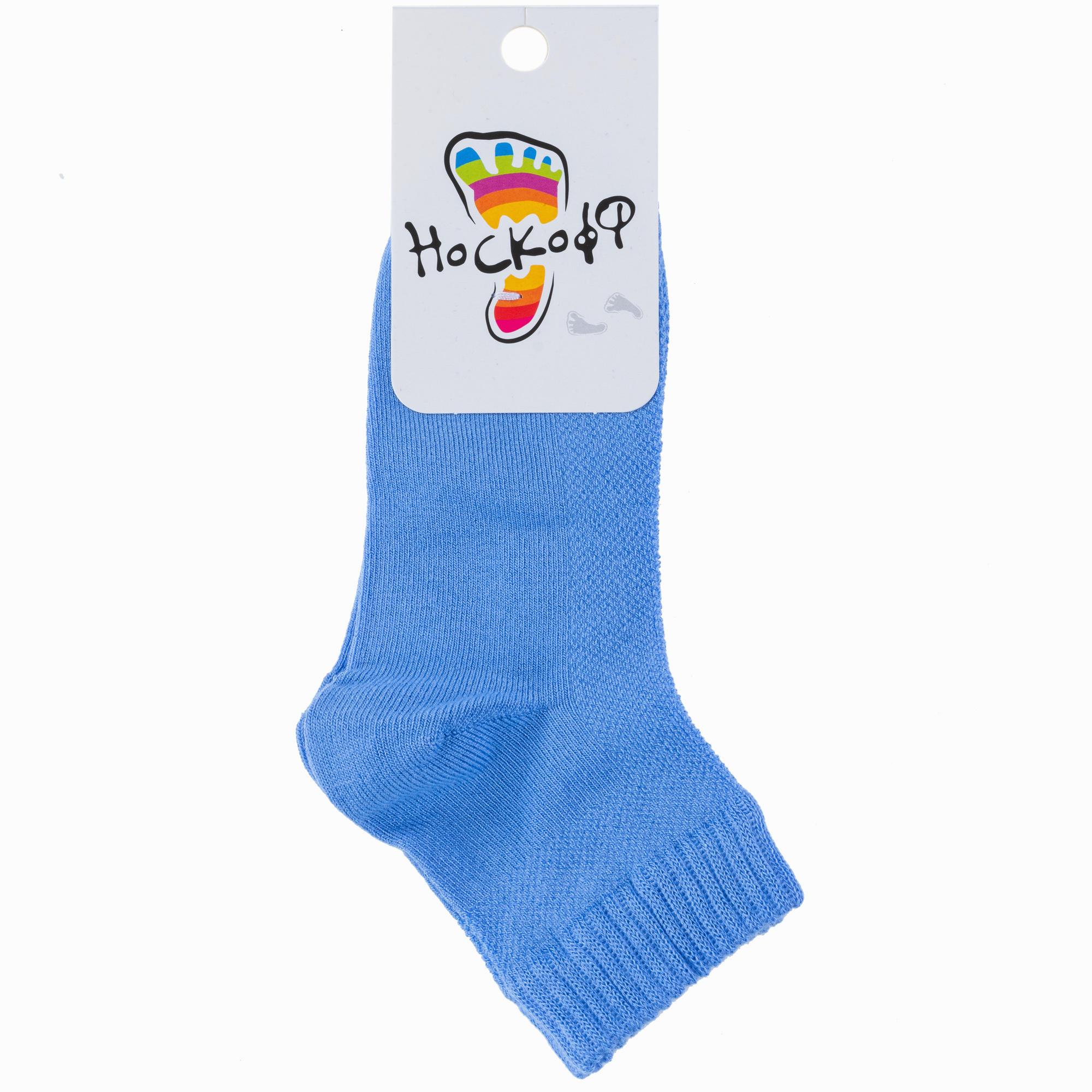 Летние короткие детские носки, цвет голубой, в сеточку, спортивные, классические, шов обычный (не бесшовные), принт (рисунок): однотонный, состав: 68% бамбук, 29% полиамид, 3% полиуретан (эластан), арт. НД10. Производитель «Носкофф» Россия под брендом «Носкофф (алсу)».