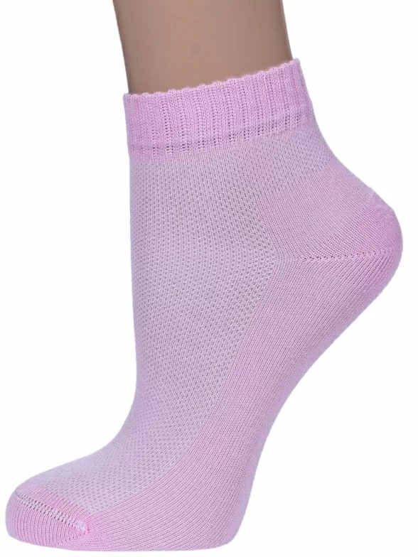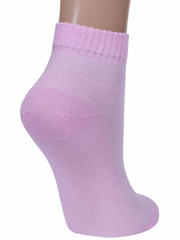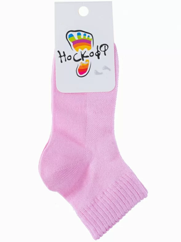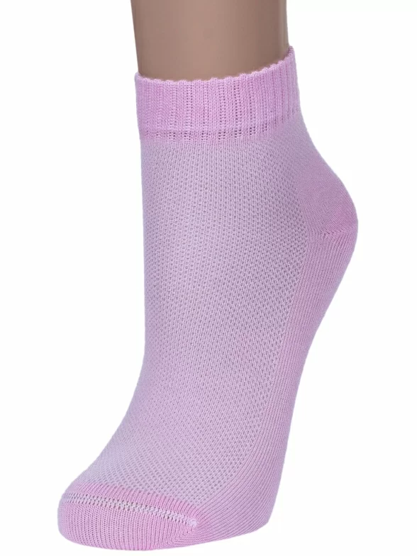 Летние короткие детские носки, цвет розовый, в сеточку, спортивные, классические, шов обычный (не бесшовные), принт (рисунок): однотонный, состав: 68% бамбук, 29% полиамид, 3% полиуретан (эластан), арт. НД10. Производитель «Носкофф» Россия под брендом «Носкофф (алсу)».
