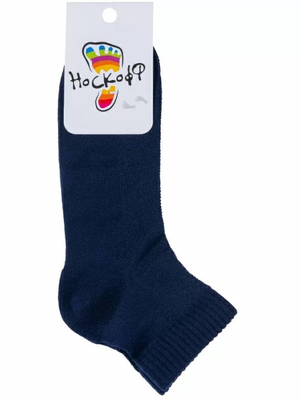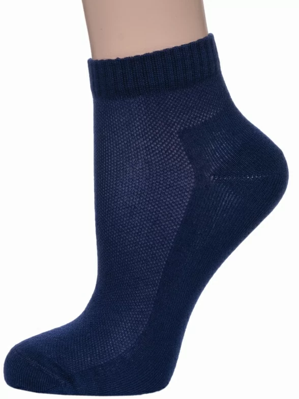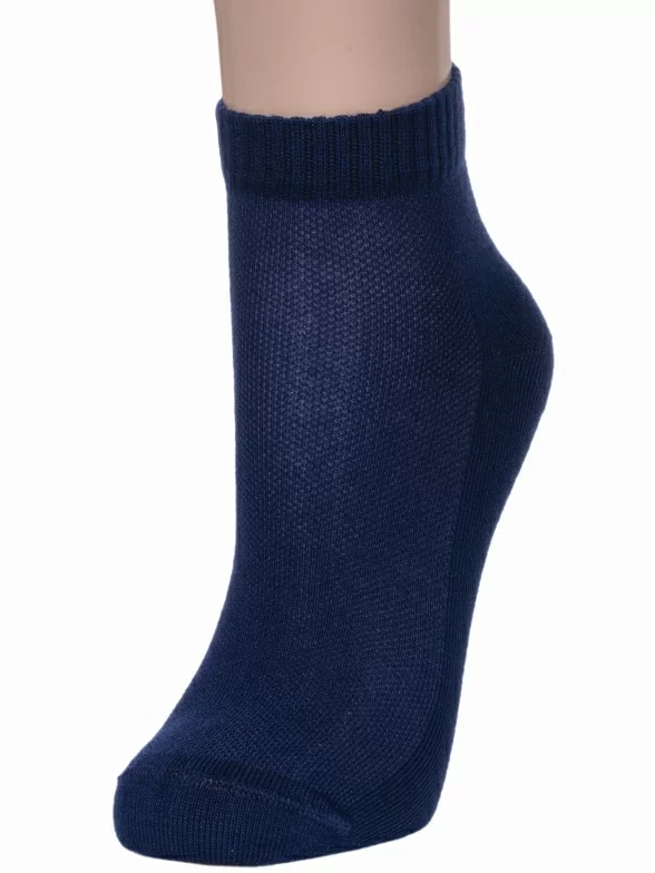 Летние короткие детские носки, цвет темно-синий, в сеточку, спортивные, классические, шов обычный (не бесшовные), принт (рисунок): однотонный, состав: 68% бамбук, 29% полиамид, 3% полиуретан (эластан), арт. НД10. Производитель «Носкофф» Россия под брендом «Носкофф (алсу)».