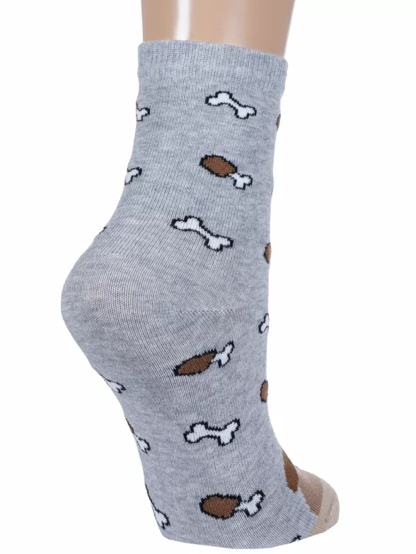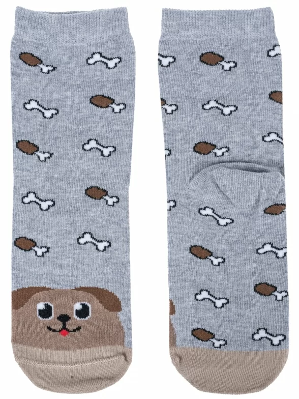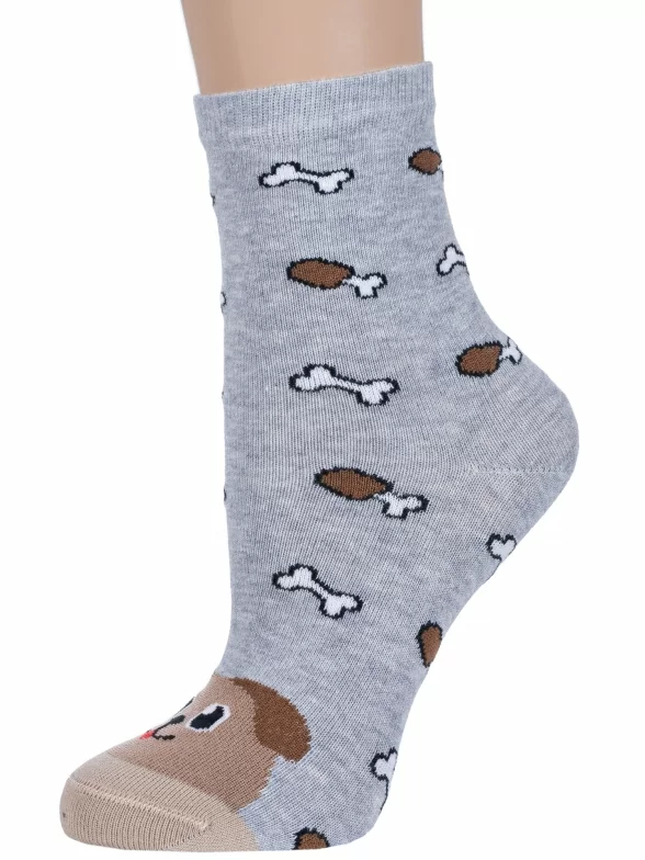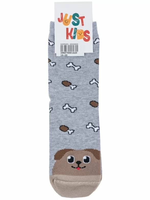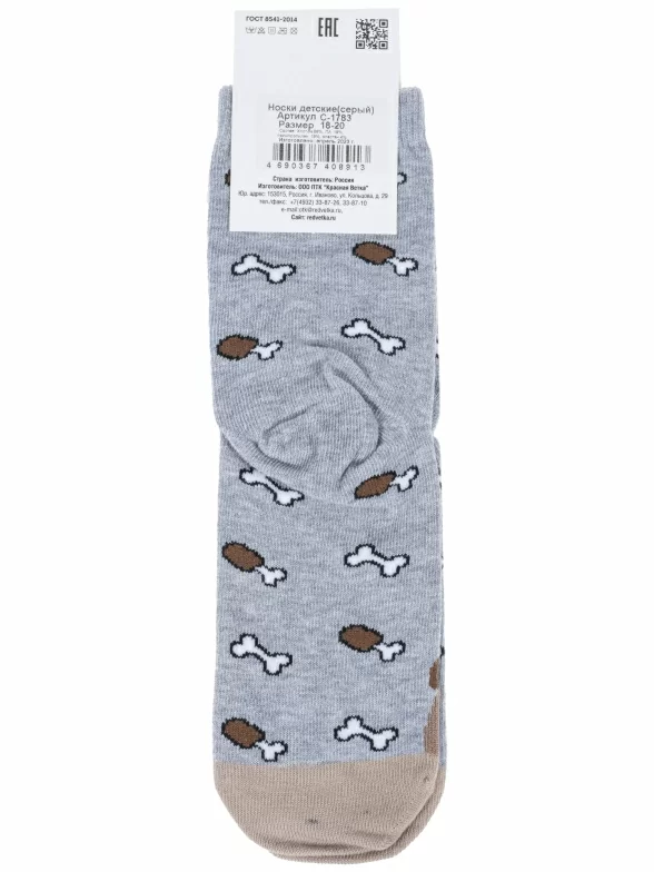 Круглогодичные средней длины детские носки, цвет серый, повседневные, шов кеттельный (бесшовная технология), принт (рисунок): контрастные пятка / мысок / резинка, животные, с узором, состав: 58% хлопок, 19% полиамид, 19% полипропилен, 4% эластан, арт. С-1783. Производитель «КРАСНАЯ ВЕТКА» Россия под брендом «Красная ветка».
