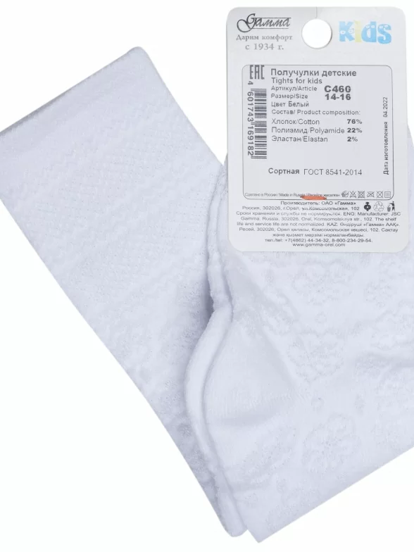 Летние детские гольфы, цвет белый, классические, шов обычный (не бесшовные), принт (рисунок): цветы / растения, с узором, однотонный, состав: 76% хлопок, 22% полиамид, 2% эластан, арт. С460. Производитель «ГАММА» Россия под брендом «Гамма».