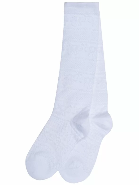 Летние детские гольфы, цвет белый, классические, шов обычный (не бесшовные), принт (рисунок): бабочки / бантики, с узором, однотонный, состав: 76% хлопок, 22% полиамид, 2% эластан, арт. С460. Производитель «ГАММА» Россия под брендом «Гамма».