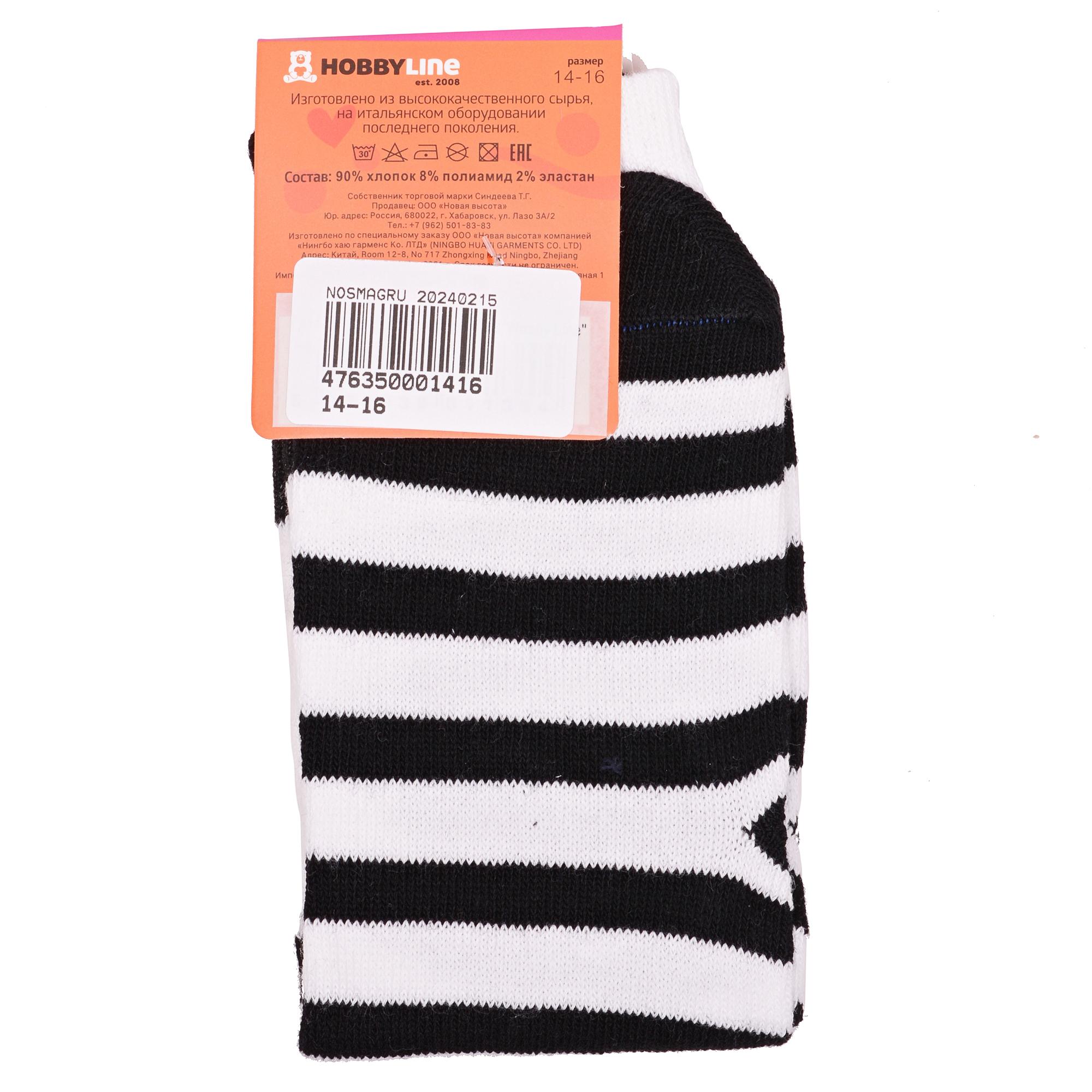 Круглогодичные детские гольфы, цвет белый, повседневные, шов обычный (не бесшовные), принт (рисунок): полоски, животные, с узором, состав: 90% хлопок, 8% полиамид, 2% эластан, арт. Гд4449. Производитель «Китай, страна бренда - Россия» под брендом «Hobby line».