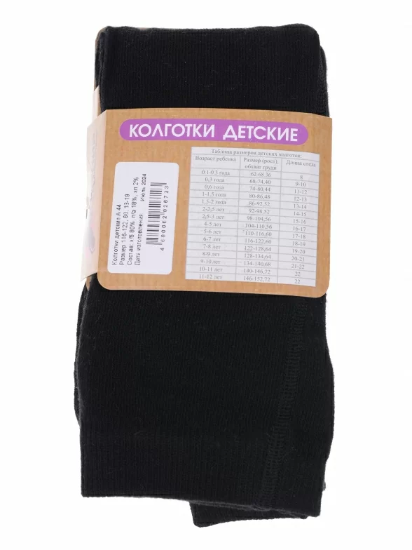 Колготки черного цвета арт. А44 в количестве одной штуки поставляются с фабричной этикеткой в обычном или курьер-пакете.
