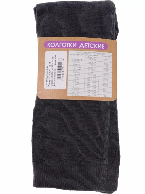 Колготки темно-серого цвета арт. А44 в количестве одной штуки поставляются с фабричной этикеткой в обычном или курьер-пакете.