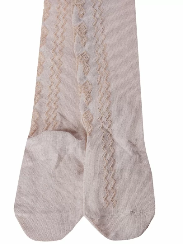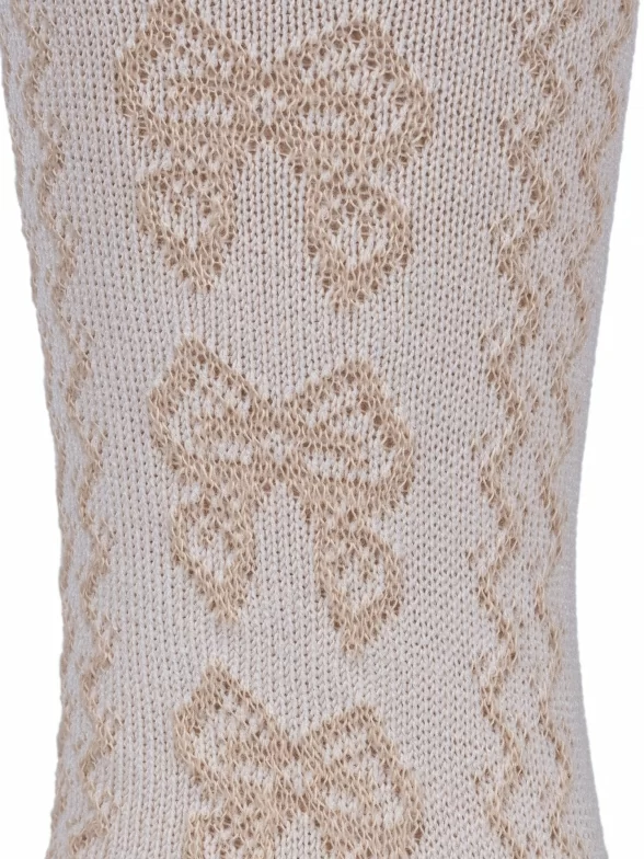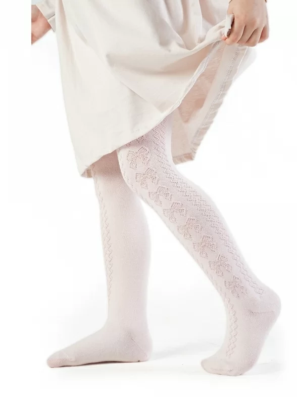 Детские ажурные колготки фабрики "Борисоглебский трикотаж" с сетчатым узором в виде бантиков и зигзагообразных линий. Подойдут девочкам для ношения в теплое время года.