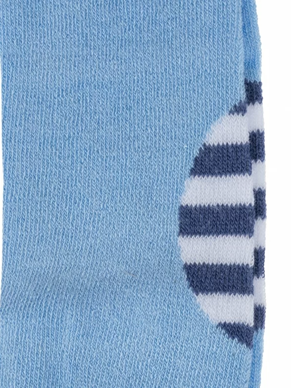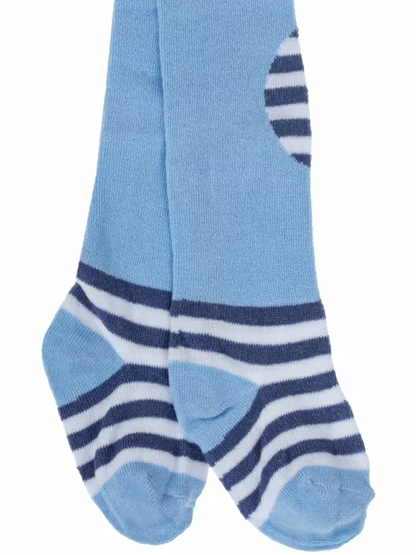 Детские колготки фабрики "Борисоглебский трикотаж" с узором в полоску, имитирующим нашивки на коленках и короткие носки на стопе. Подойдут мальчикам и девочкам для прогулок или детского сада в демисезонный период.