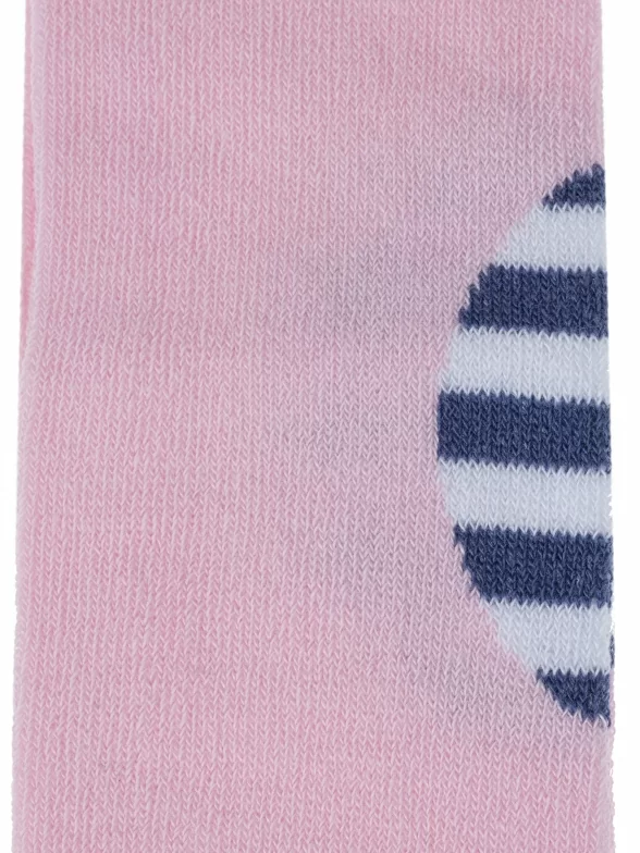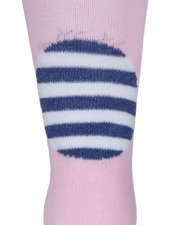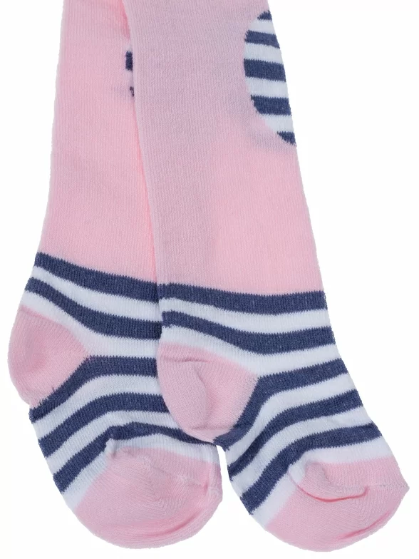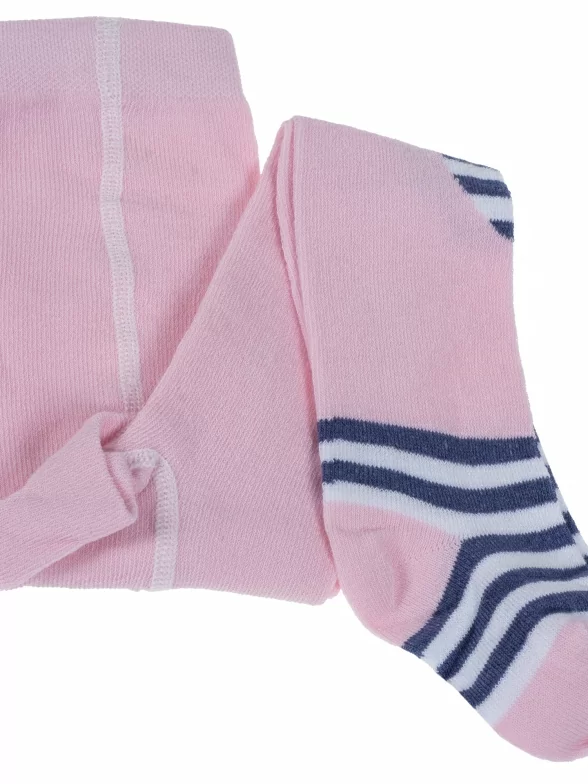 Детские колготки фабрики "Борисоглебский трикотаж" с узором в полоску, имитирующим нашивки на коленках и короткие носки на стопе. Подойдут мальчикам и девочкам для прогулок или детского сада в демисезонный период.