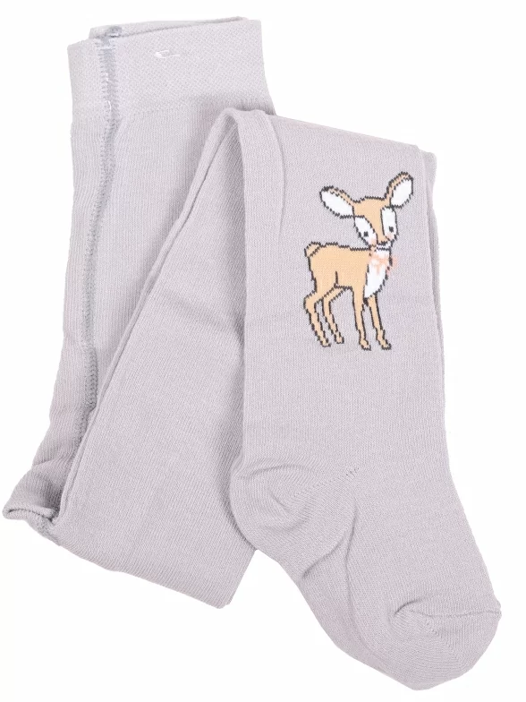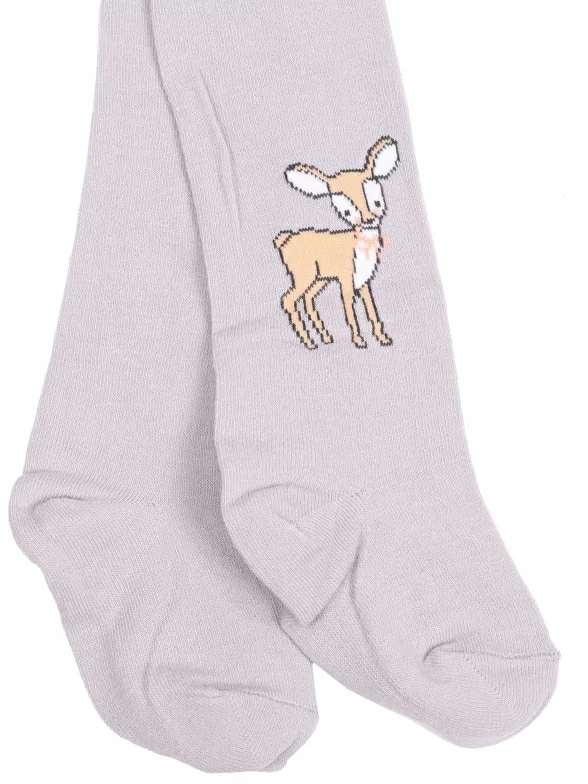 Детские колготки фабрики "Борисоглебский трикотаж" с принтом над щиколоткой в виде милого олененка. Подойдут девочкам для прогулок или детского сада в демисезонный период.