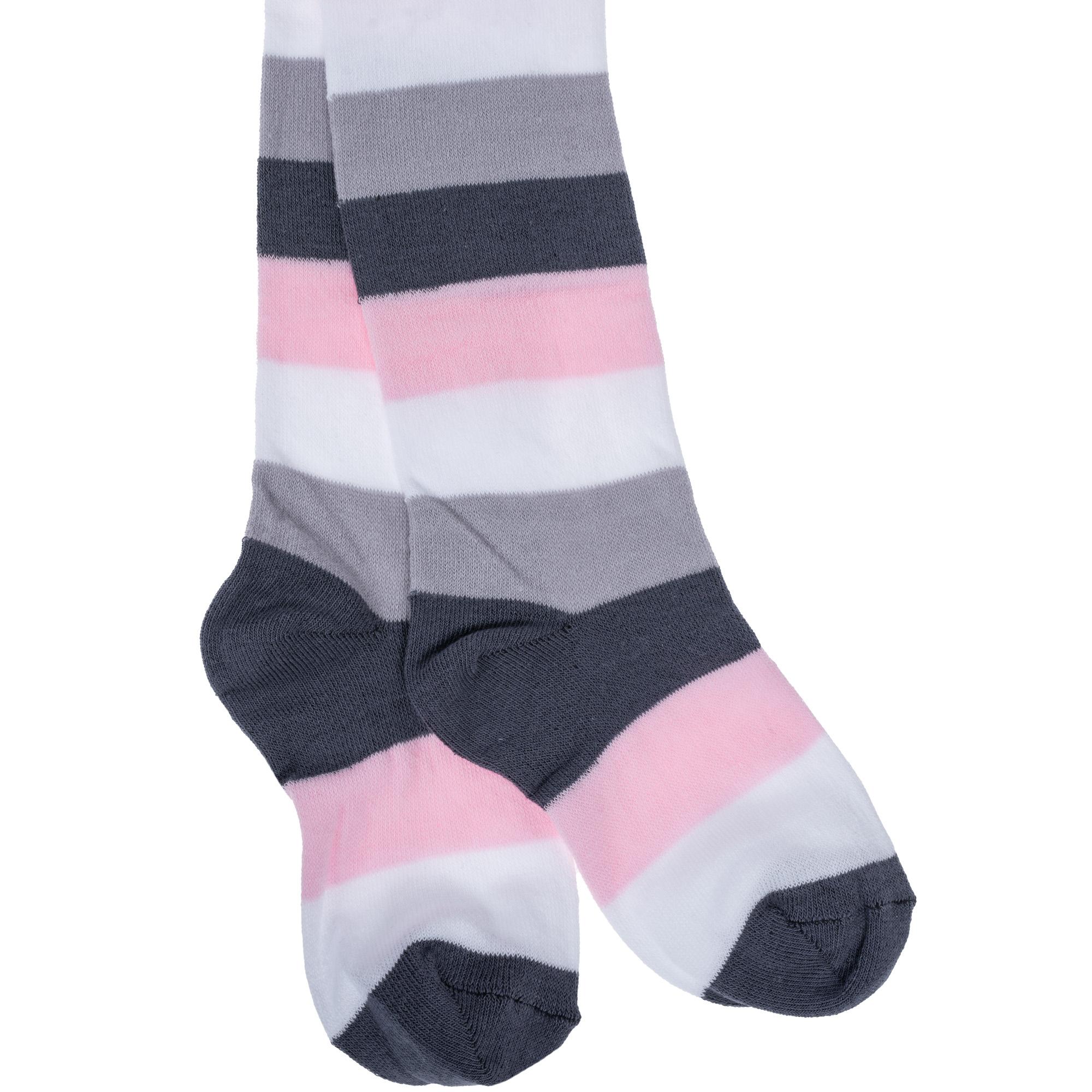Детские колготки фабрики "Борисоглебский трикотаж" с разноцветными полосками ниже колена. Подойдут девочкам для прогулок, школы или детского сада в демисезонный период.