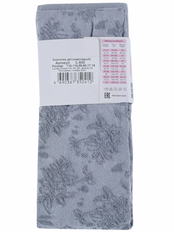 Колготки серого цвета арт. С-830 в количестве одной штуки поставляются с фабричной этикеткой в обычном или курьер-пакете.