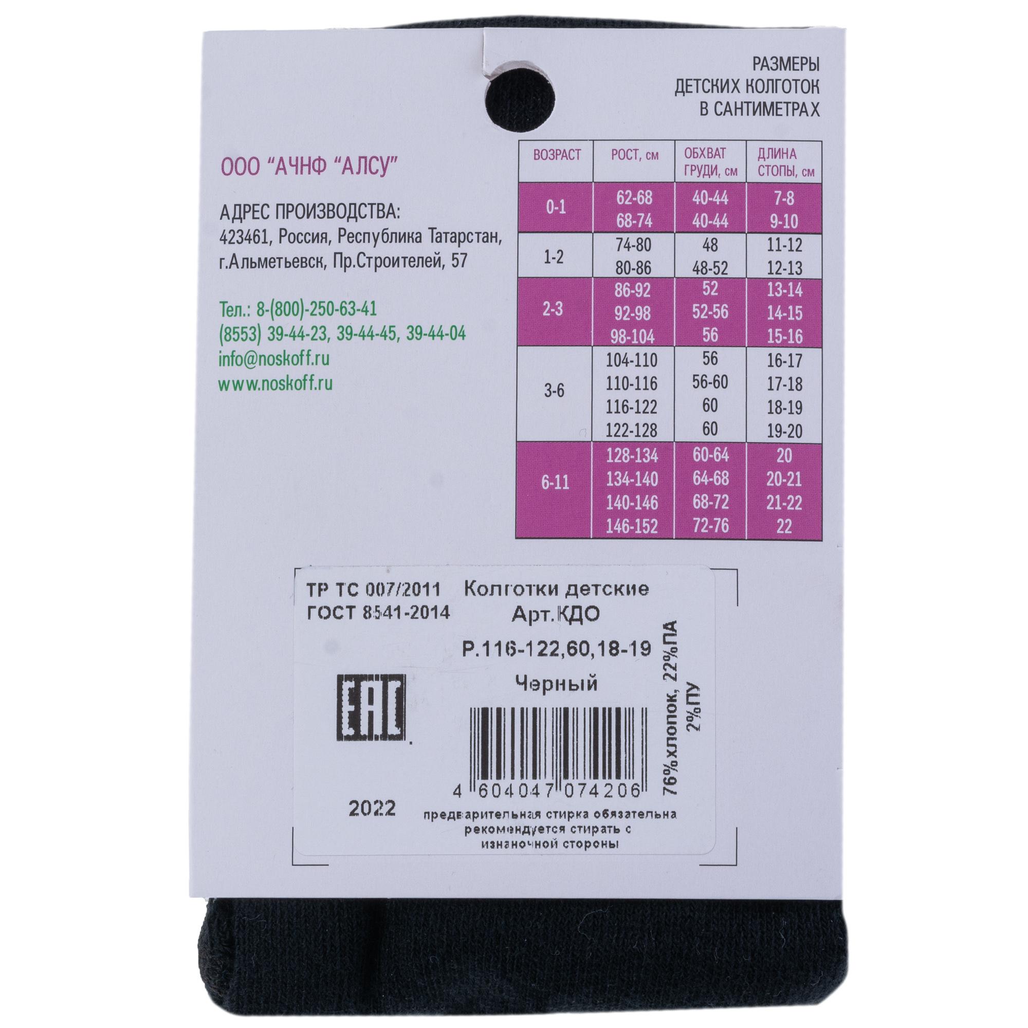 Детские колготки "Носкофф" (АЛСУ) КДО, ЧЕРНЫЕ