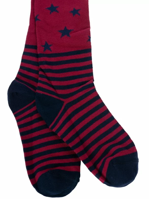 Детские колготки бренда PARA socks со звездным принтом и имитацией полосатых носков. Подойдут мальчикам и девочкам для прогулок, школы или детского сада в демисезонный период.