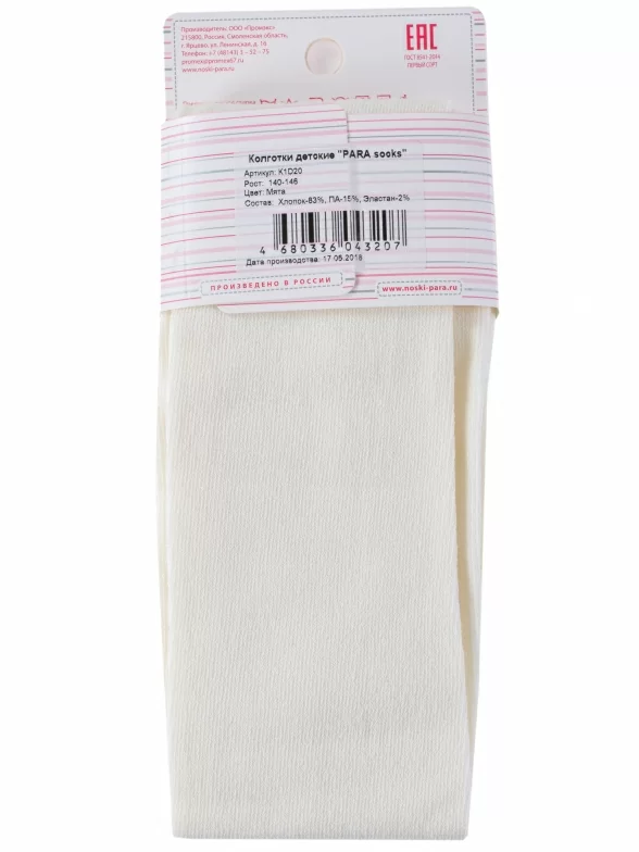 Колготки бело-салатового цвета ("мята") арт. K1D20 в количестве одной штуки поставляются с фабричной этикеткой в обычном или курьер-пакете.