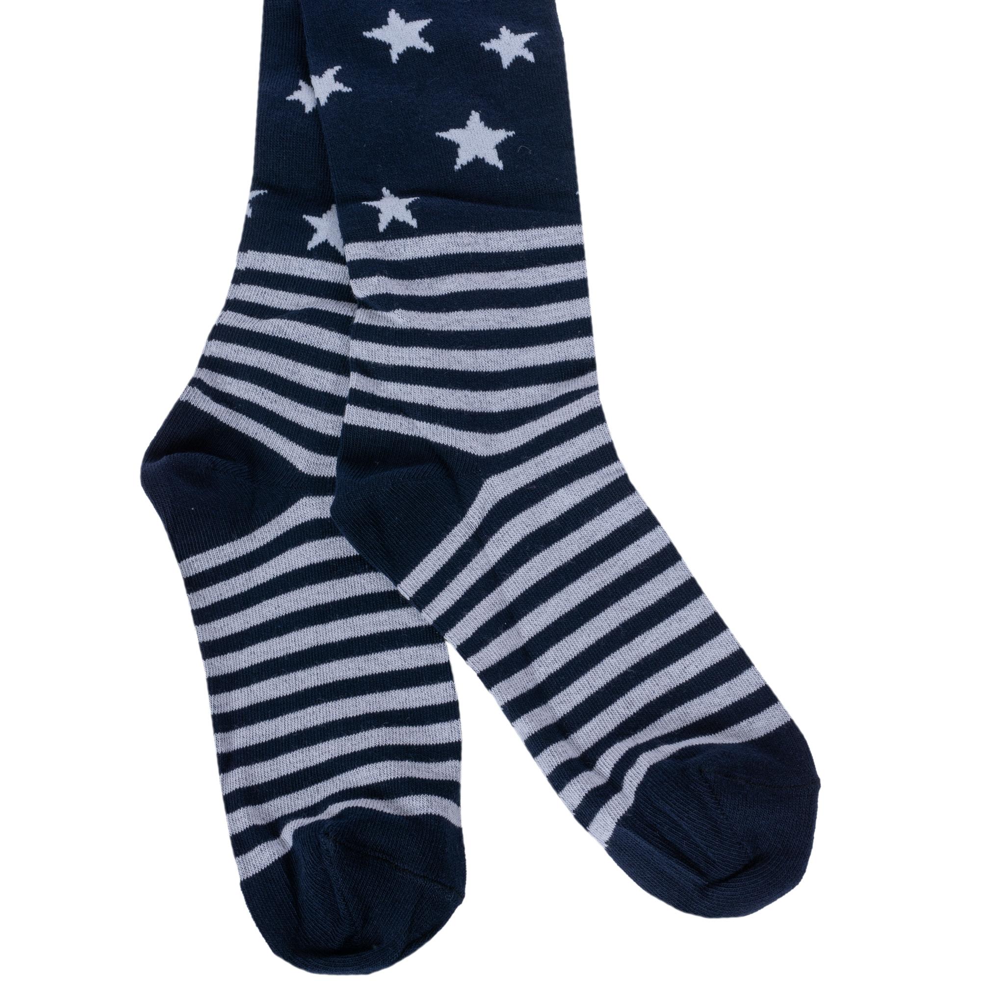 Детские колготки бренда PARA socks со звездным принтом и имитацией полосатых носков. Подойдут мальчикам и девочкам для прогулок, школы или детского сада в демисезонный период.