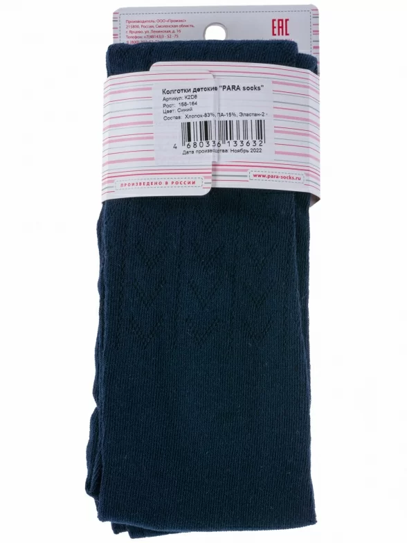 Колготки синего цвета арт. K2D8 в количестве одной штуки поставляются с фабричной этикеткой в обычном или курьер-пакете.