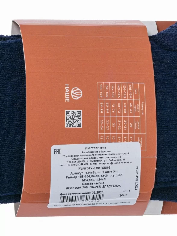 Детские колготки "НАШЕ" Смоленской чулочной фабрики, 124С8, рис. 1, ТЕМНО-СИНИЕ №3-1