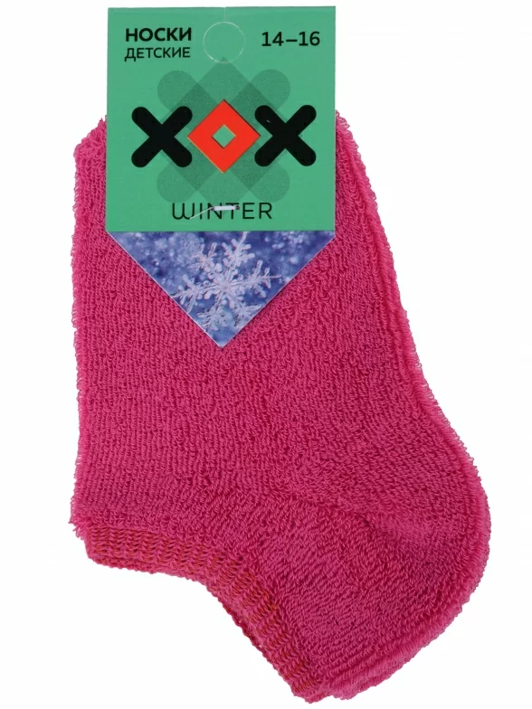 Детские короткие носки с наружной махрой ХОХ, DZ-3R18, МАЛИНОВЫЕ