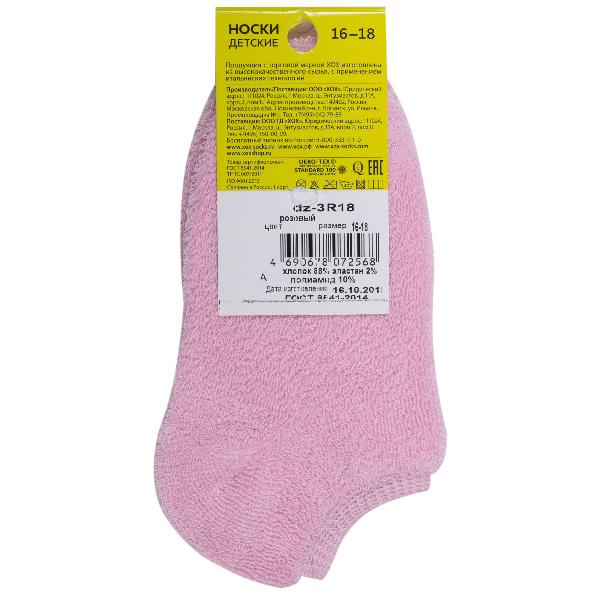 Зимние короткие детские носки, цвет розовый, теплые, махровые, классические, шов обычный (не бесшовные), принт (рисунок): однотонный, без рисунков/узоров, состав: 88% хлопок, 10% полиамид, 2% эластан, арт. DZ-3R18. Производитель «ХОХ» Россия под брендом «Хох».
