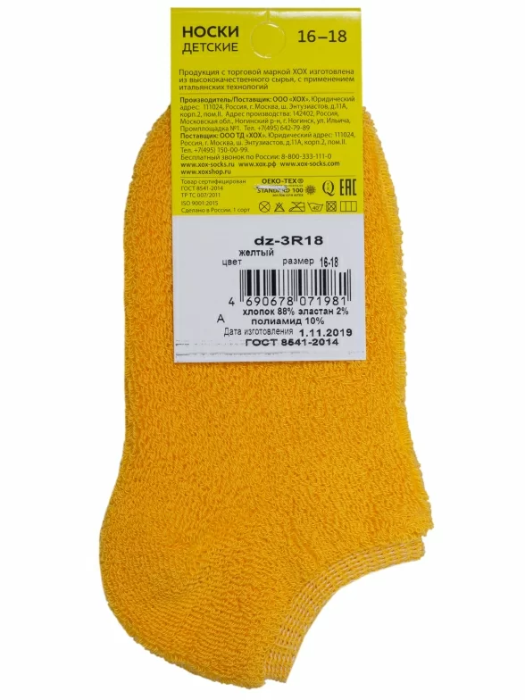 Детские короткие носки с наружной махрой ХОХ, DZ-3R18, ТЕМНО-ЖЕЛТЫЕ