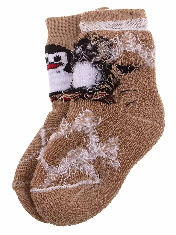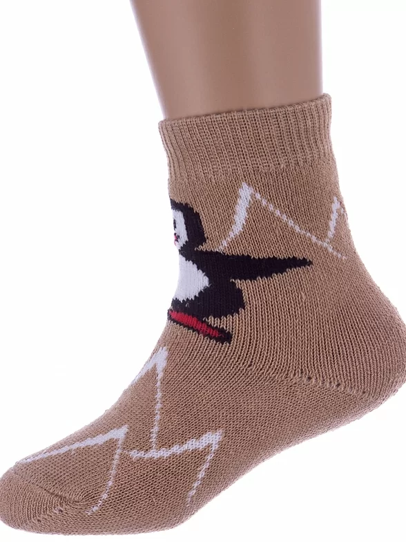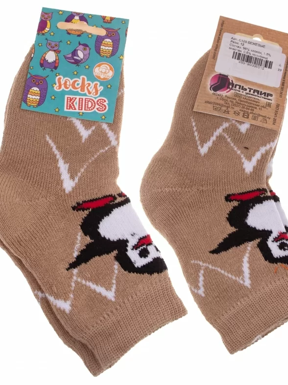 Межсезонные или зимние укороченные детские носки, цвет бежевый, теплые, с принтом, махровые, состав: 98% хлопок, 1.5% эластан, 0.5% полиамид, арт. С129. Производитель «ООО Альтаир, г. Орск, Оренбургская обл, Россия» под брендом «Альтаир».