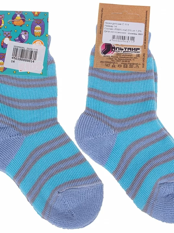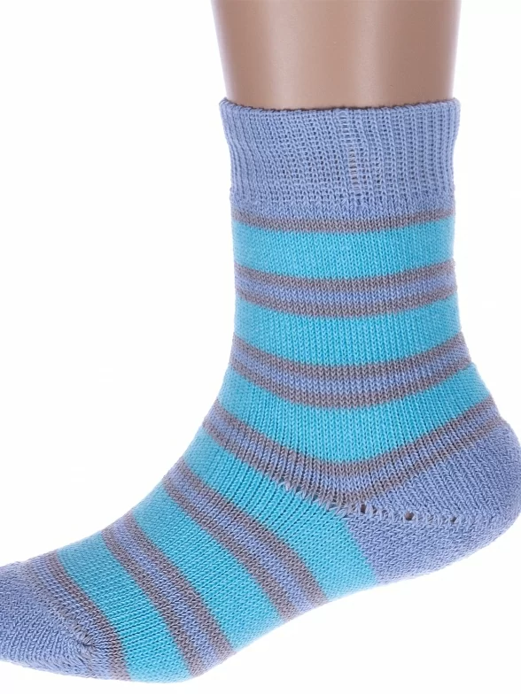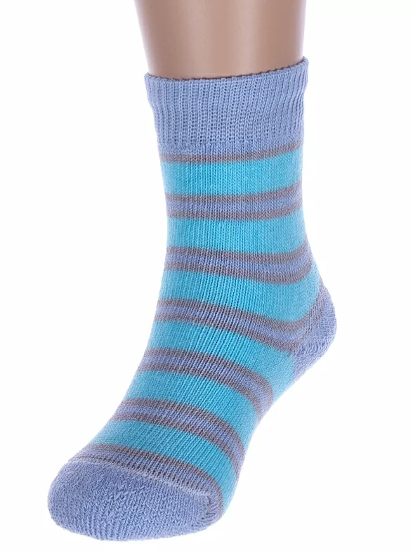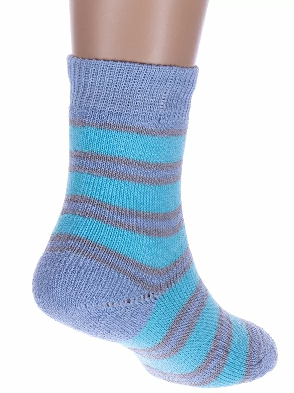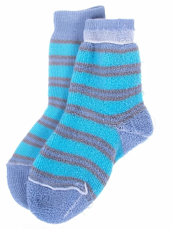 Межсезонные или зимние укороченные детские носки, цвет голубой-бирюзовый, теплые, повседневные, махровые, возможно бесшовные, принт (рисунок): полоски, с узором, состав: 98% хлопок, 1.5% эластан, 0.5% полиамид, арт. С114. Производитель «ООО Альтаир, г. Орск, Оренбургская обл, Россия» под брендом «Альтаир».