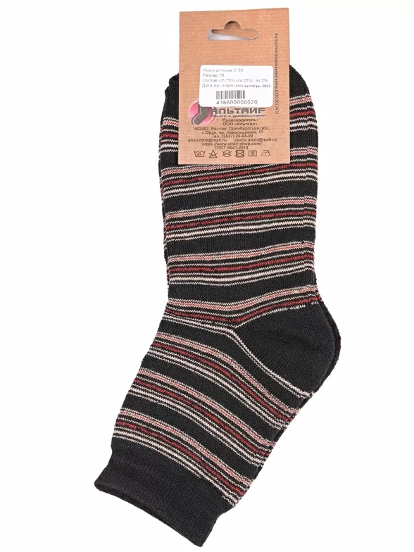 Зимние или межсезонные укороченные детские носки, цвет черный, теплые, состав: 75% хлопок, 23% полиамид, 2% эластан, арт. С30. Производитель «ООО Альтаир, г. Орск, Оренбургская обл, Россия» под брендом «Альтаир».