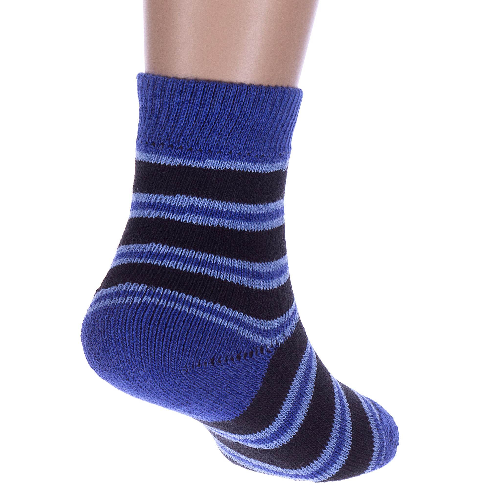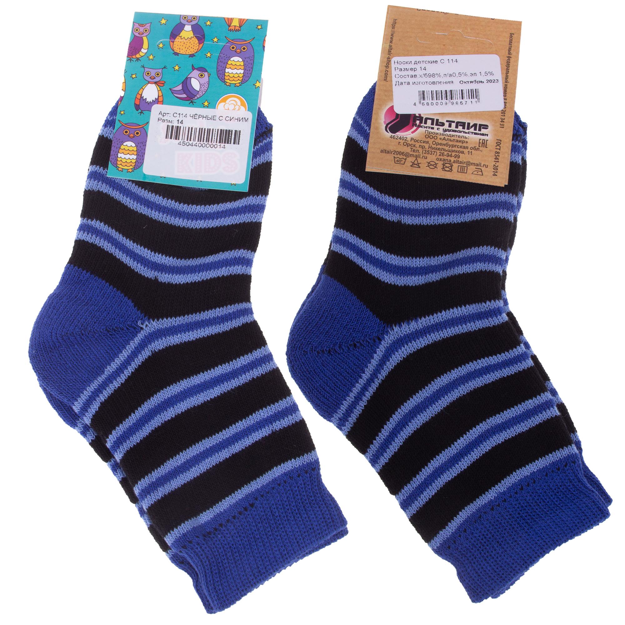 Межсезонные или зимние укороченные детские носки, цвет синий-черный, теплые, повседневные, махровые, возможно бесшовные, принт (рисунок): полоски, с узором, состав: 98% хлопок, 1.5% эластан, 0.5% полиамид, арт. С114. Производитель «ООО Альтаир, г. Орск, Оренбургская обл, Россия» под брендом «Альтаир».