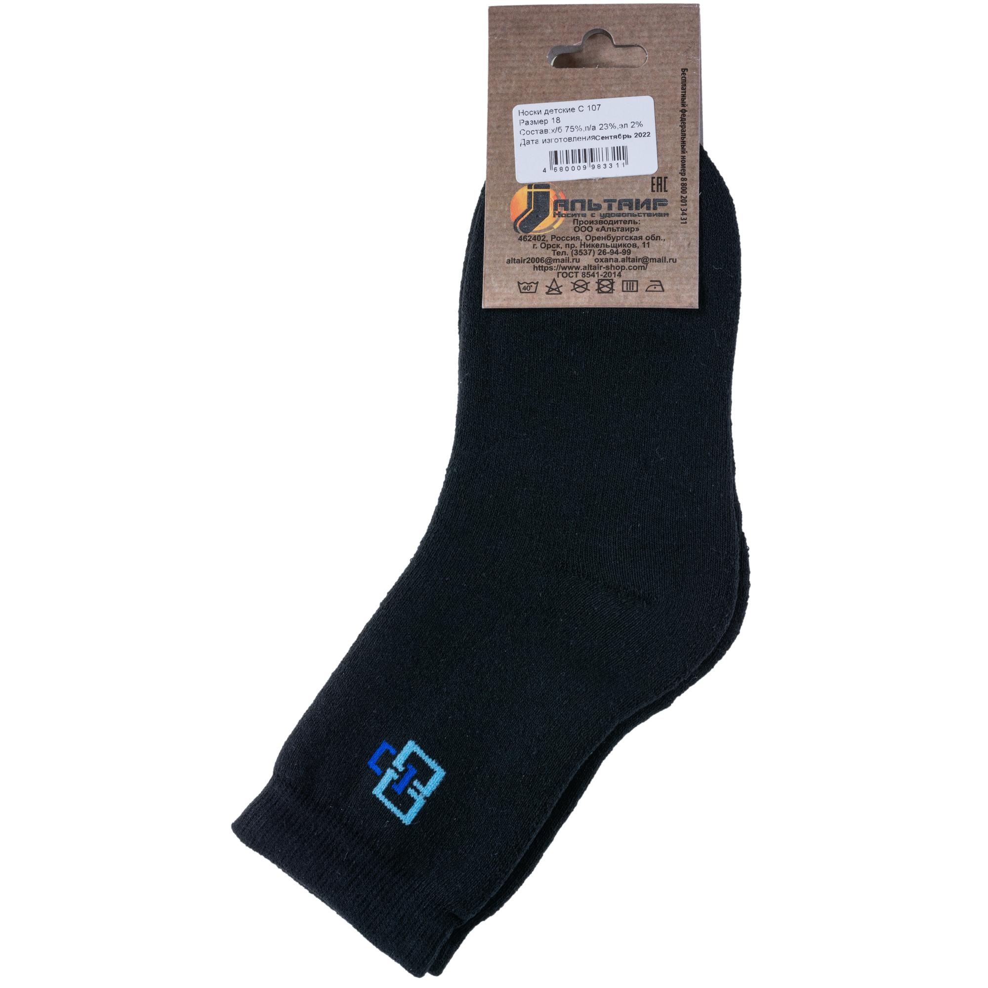 Зимние средней длины детские носки, цвет черный, теплые, махровые, классические, шов обычный (не бесшовные), принт (рисунок): однотонный, небольшой рисунок, состав: 75% хлопок, 23% полиамид, 2% эластан, арт. С107. Производитель «ООО Альтаир, г. Орск, Оренбургская обл, Россия» под брендом «Альтаир».