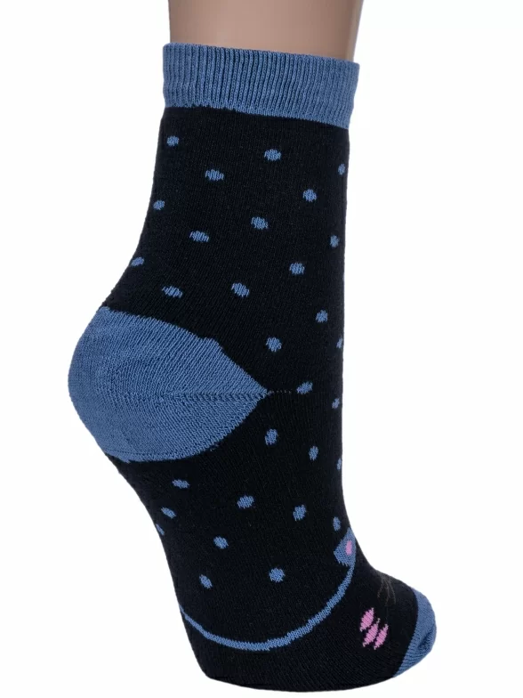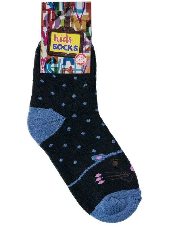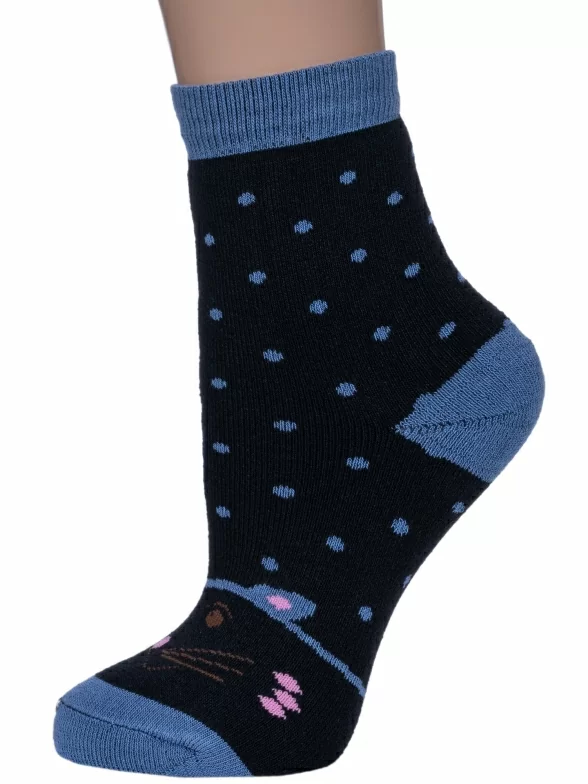 Зимние укороченные детские носки, цвет черный, теплые, махровые, повседневные, шов обычный (не бесшовные), принт (рисунок): животные, с узором, крупные контрастные рисунки, состав: 80% хлопок, 18% полиамид, 2% эластан, арт. С112. Производитель «ООО Альтаир, г. Орск, Оренбургская обл, Россия» под брендом «Альтаир».
