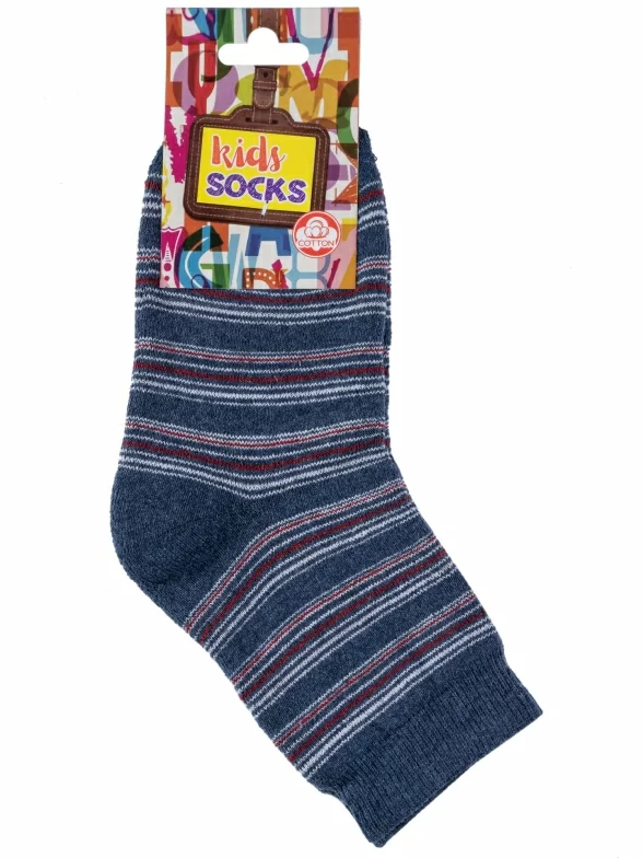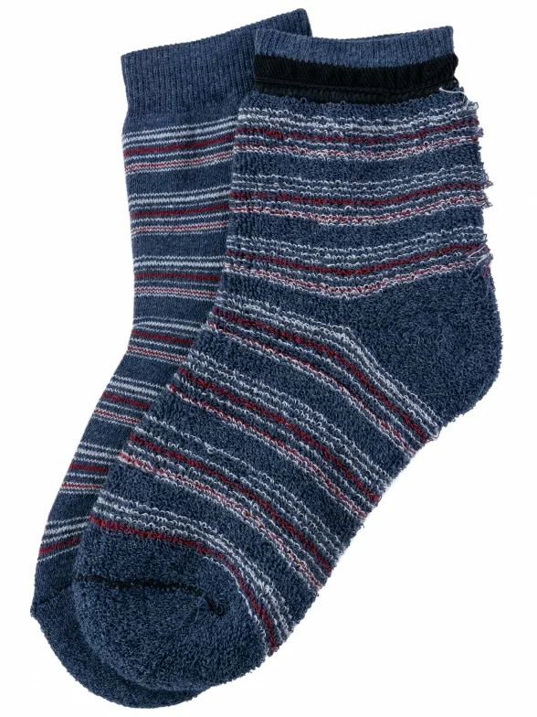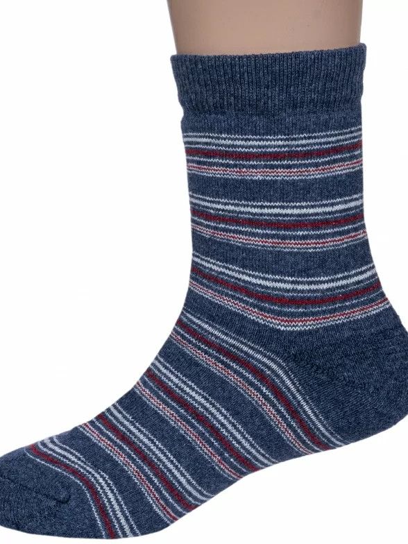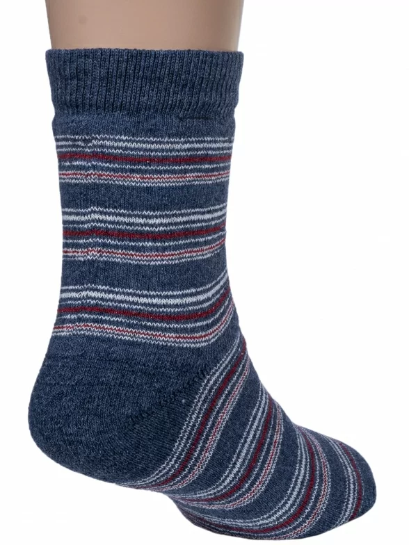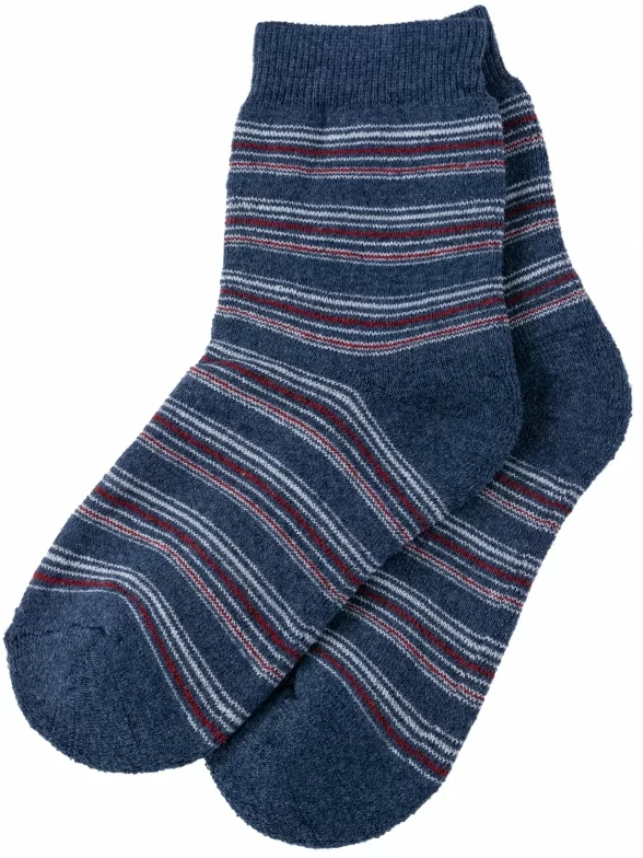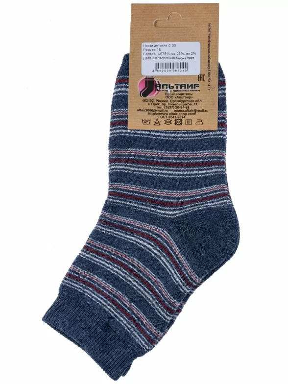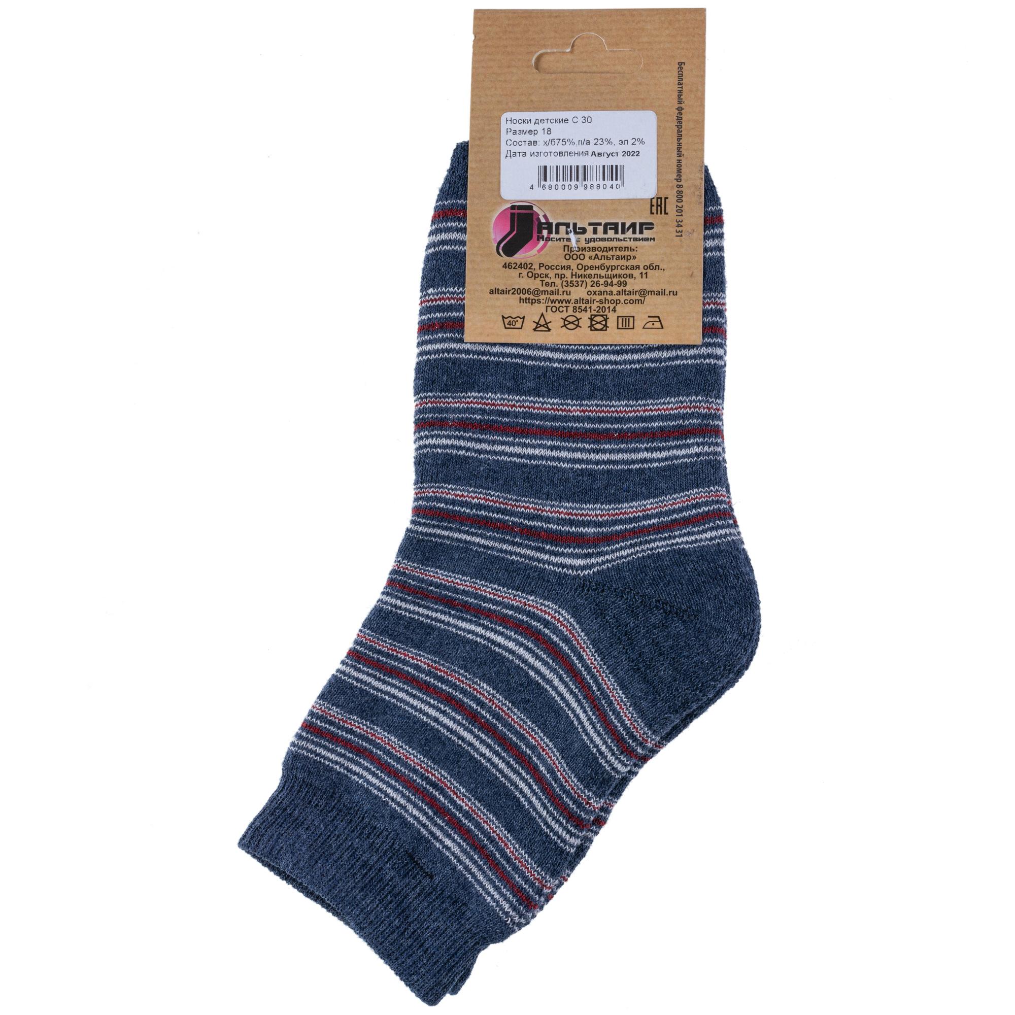 Зимние средней длины детские носки, цвет синий-джинс, теплые, махровые, классические, шов обычный (не бесшовные), принт (рисунок): полоски, с узором, состав: 75% хлопок, 23% полиамид, 2% эластан, арт. С30. Производитель «ООО Альтаир, г. Орск, Оренбургская обл, Россия» под брендом «Альтаир».