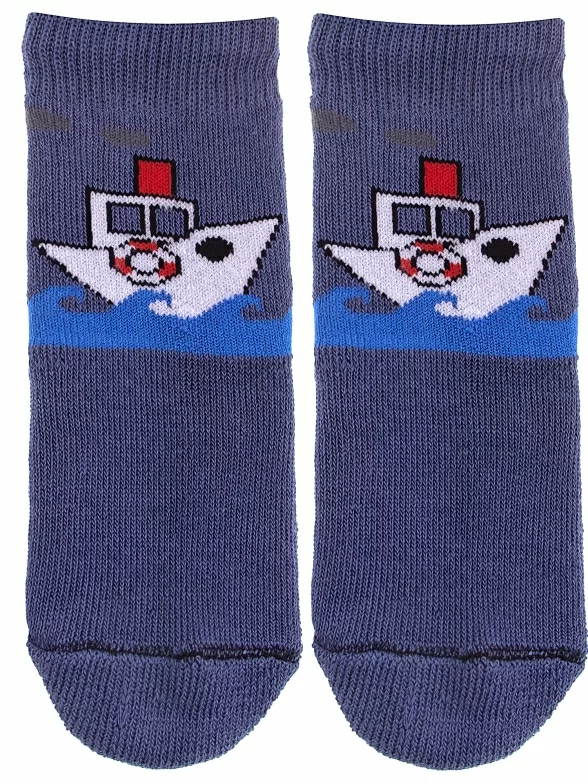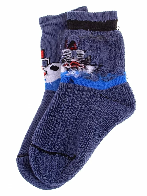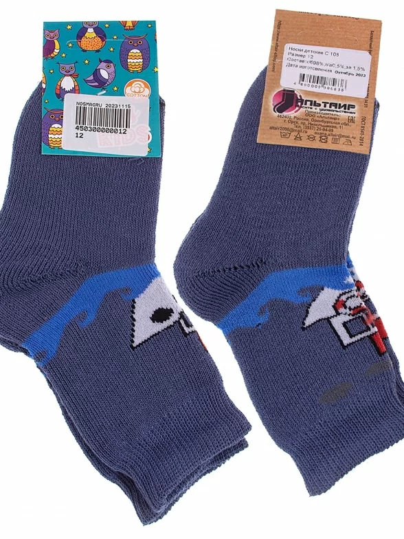 Межсезонные или зимние укороченные детские носки, цвет джинс, теплые, с принтом, махровые, состав: 98% хлопок, 1.5% эластан, 0.5% полиамид, арт. С108. Производитель «ООО Альтаир, г. Орск, Оренбургская обл, Россия» под брендом «Альтаир».