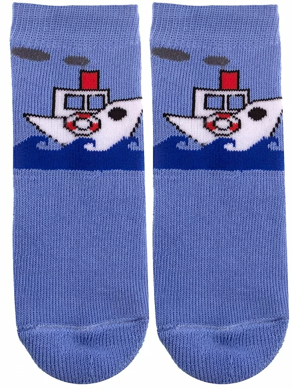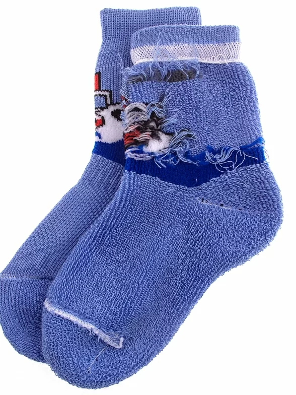 Межсезонные или зимние укороченные детские носки, цвет голубой, теплые, с принтом, махровые, состав: 98% хлопок, 1.5% эластан, 0.5% полиамид, арт. С108. Производитель «ООО Альтаир, г. Орск, Оренбургская обл, Россия» под брендом «Альтаир».