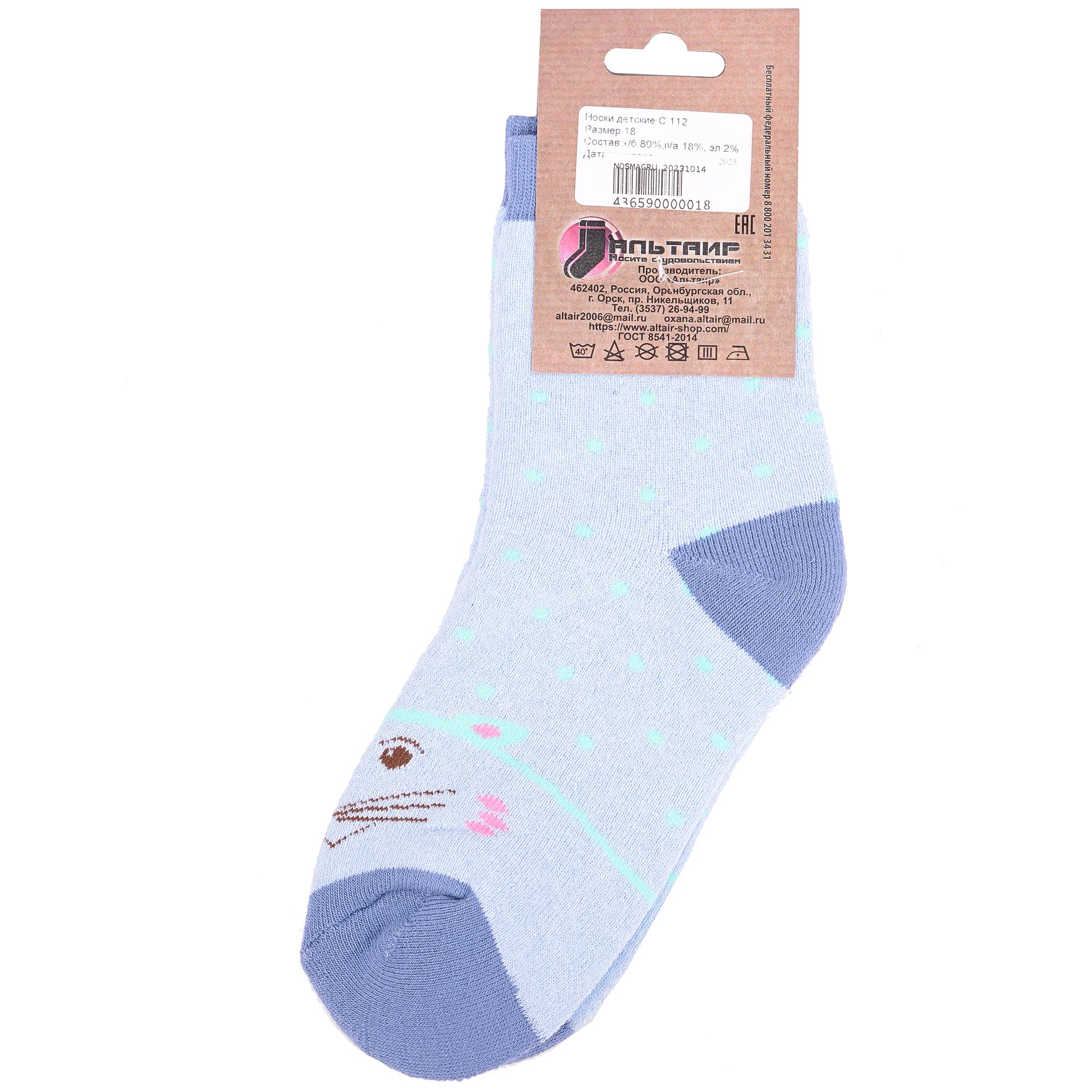 Межсезонные или зимние укороченные детские носки, цвет голубой, теплые, состав: 80% хлопок, 18% полиамид, 2% эластан, арт. С112. Производитель «ООО Альтаир, г. Орск, Оренбургская обл, Россия» под брендом «Альтаир».