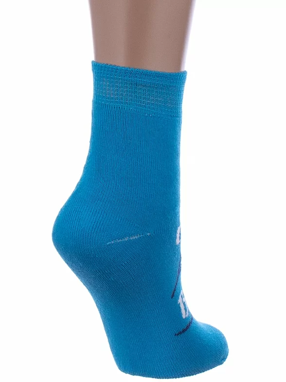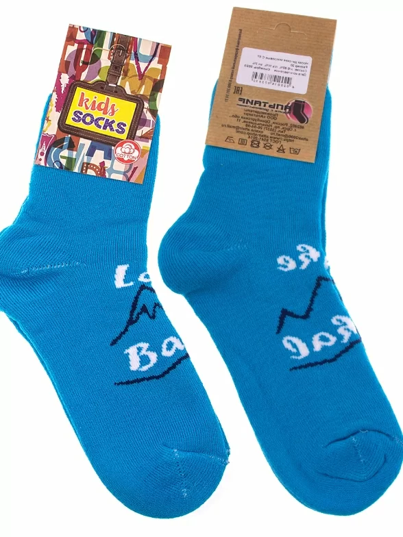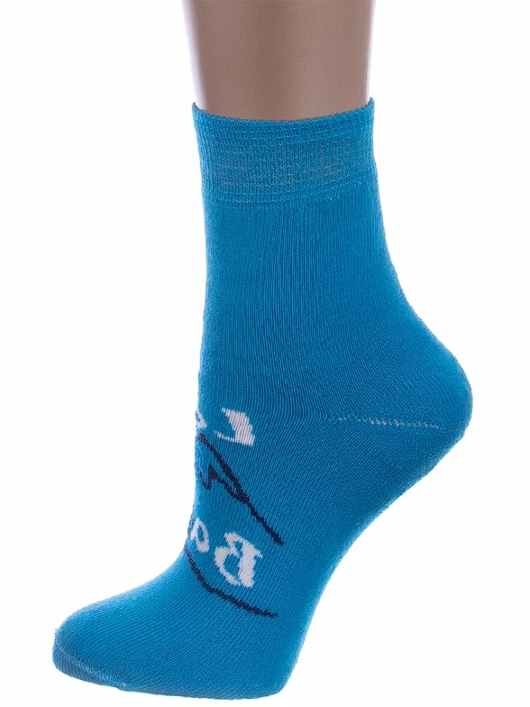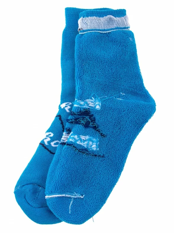 Зимние или межсезонные укороченные детские носки, цвет голубой, теплые, с принтом, махровые, состав: 80% хлопок, 18% полиамид, 2% эластан, арт. С67. Производитель «ООО Альтаир, г. Орск, Оренбургская обл, Россия» под брендом «Альтаир».