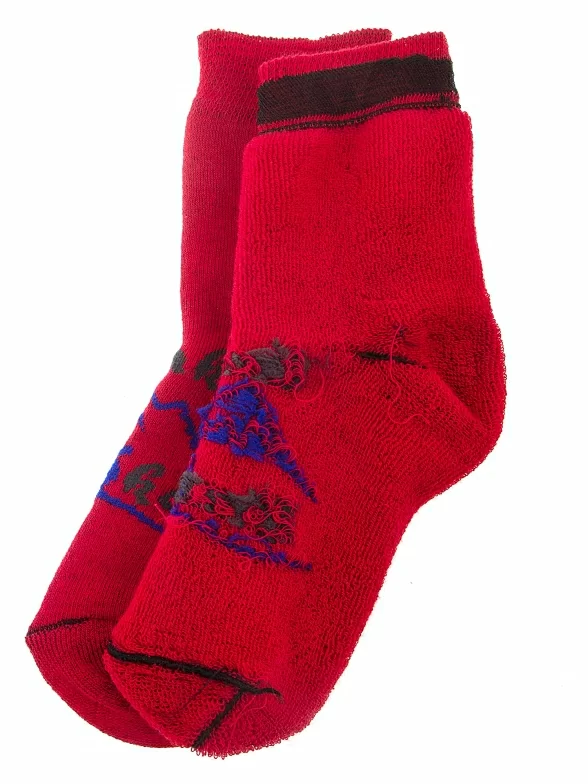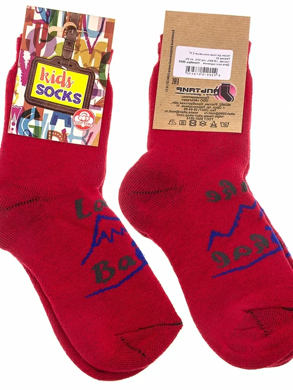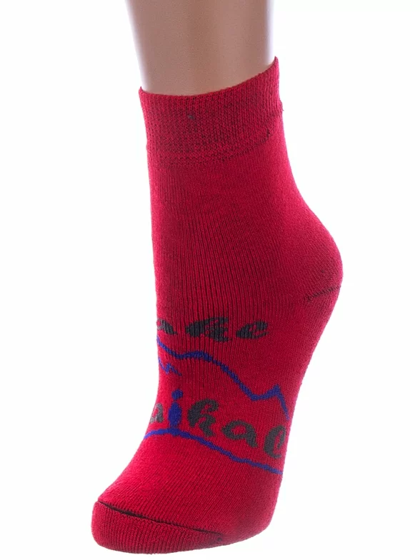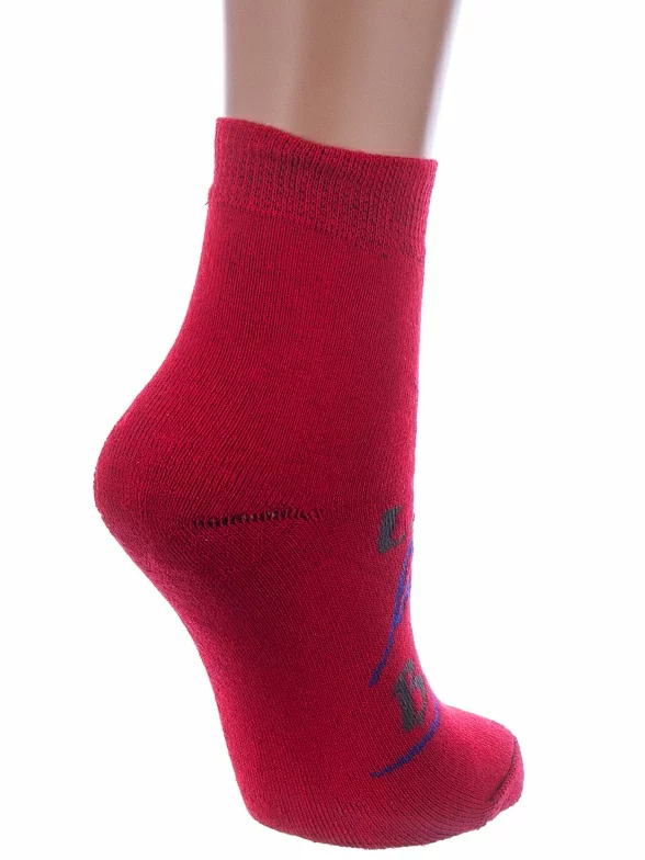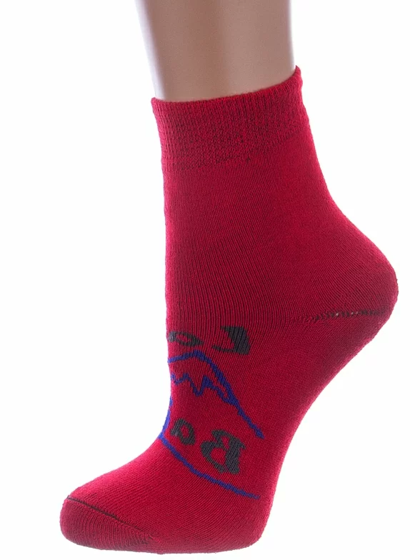 Межсезонные или зимние укороченные детские носки, цвет красный, теплые, с принтом, махровые, состав: 80% хлопок, 18% полиамид, 2% эластан, арт. С67. Производитель «ООО Альтаир, г. Орск, Оренбургская обл, Россия» под брендом «Альтаир».