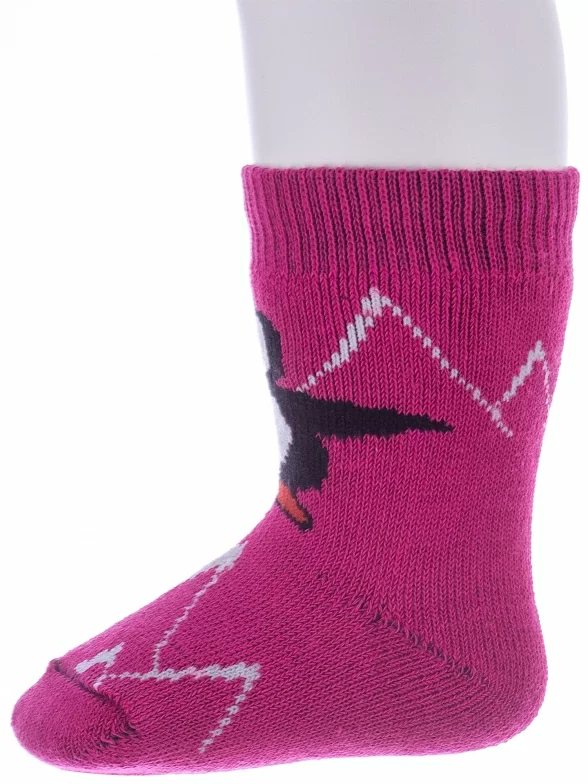 Межсезонные или зимние средней длины детские носки, цвет фуксия, теплые, с принтом, махровые, состав: 98% хлопок, 1.5% эластан, 0.5% полиамид, арт. С129. Производитель «ООО Альтаир, г. Орск, Оренбургская обл, Россия» под брендом «Альтаир».