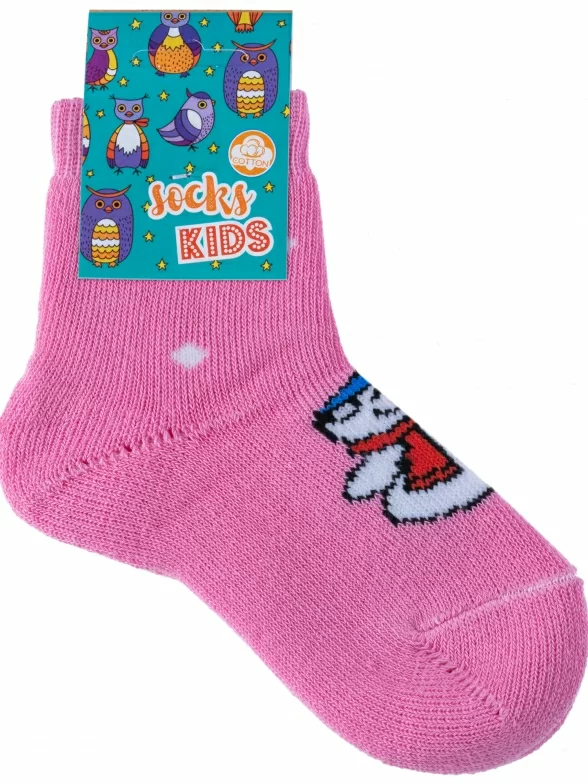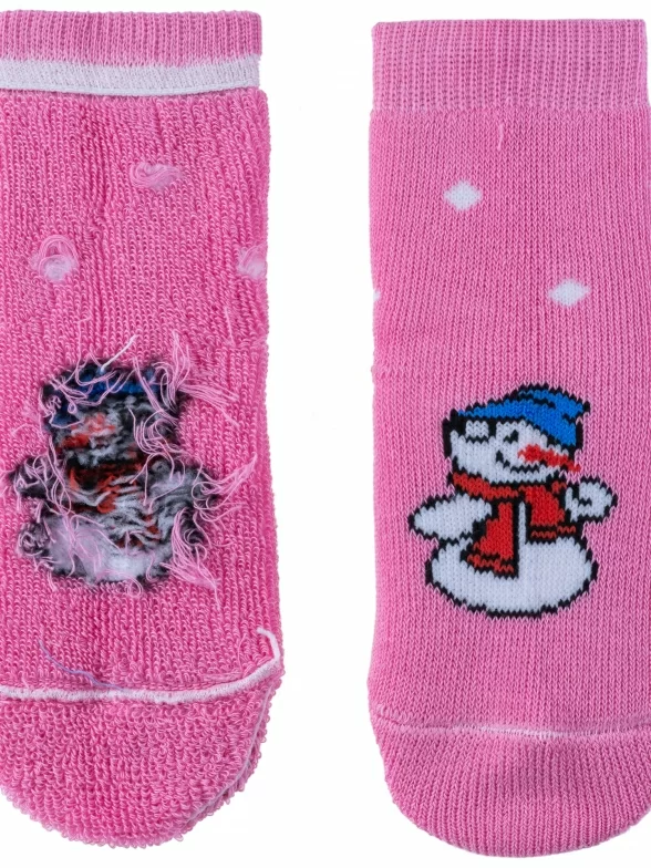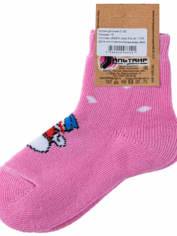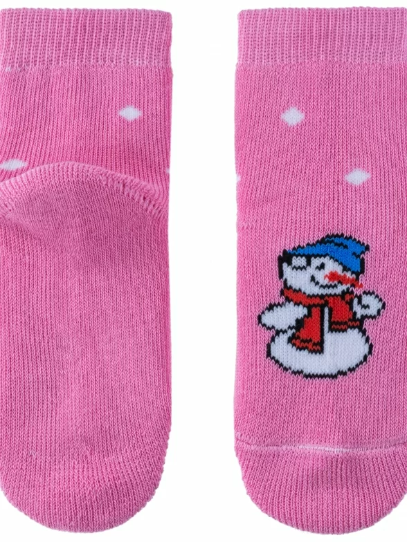 Зимние укороченные детские носки, цвет розовый, теплые, махровые, повседневные, шов обычный (не бесшовные), принт (рисунок): новый год, с узором, крупные контрастные рисунки, состав: 98% хлопок, 0.5% полиамид, 1.5% эластан, арт. С90. Производитель «ООО Альтаир, г. Орск, Оренбургская обл, Россия» под брендом «Альтаир».