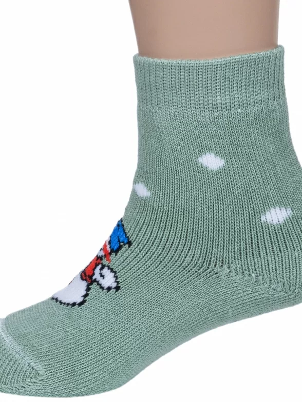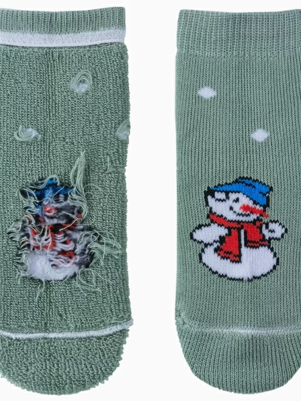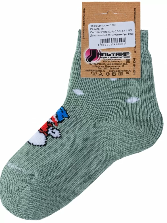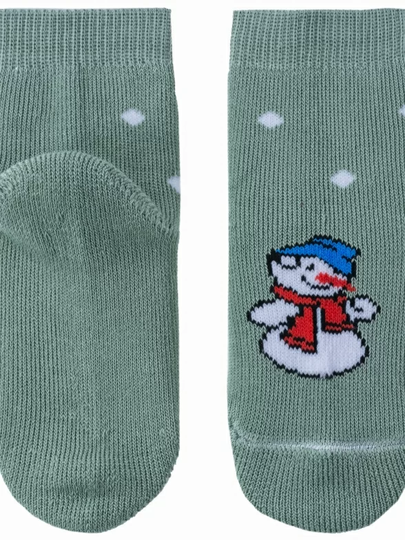 Зимние укороченные детские носки, цвет салатовый, теплые, махровые, повседневные, шов обычный (не бесшовные), принт (рисунок): новый год, с узором, крупные контрастные рисунки, состав: 98% хлопок, 0.5% полиамид, 1.5% эластан, арт. С90. Производитель «ООО Альтаир, г. Орск, Оренбургская обл, Россия» под брендом «Альтаир».