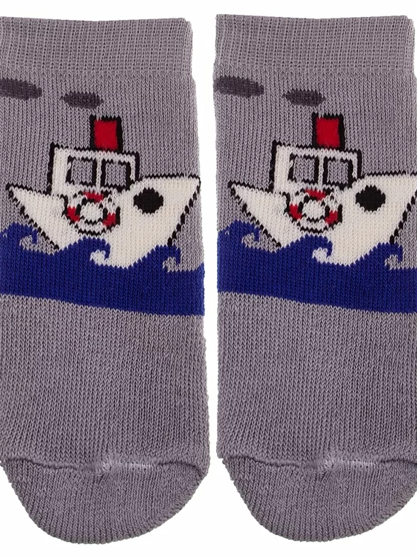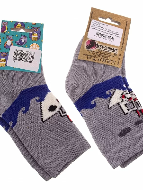 Межсезонные или зимние средней длины детские носки, цвет серый, теплые, с принтом, махровые, состав: 98% хлопок, 1.5% эластан, 0.5% полиамид, арт. С108. Производитель «ООО Альтаир, г. Орск, Оренбургская обл, Россия» под брендом «Альтаир».