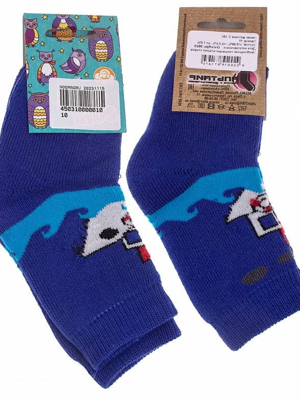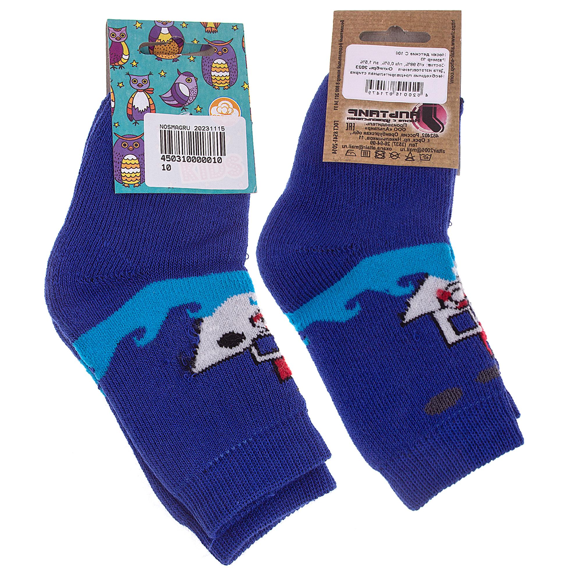 Межсезонные или зимние средней длины детские носки, цвет синий, теплые, с принтом, махровые, состав: 98% хлопок, 1.5% эластан, 0.5% полиамид, арт. С108. Производитель «ООО Альтаир, г. Орск, Оренбургская обл, Россия» под брендом «Альтаир».