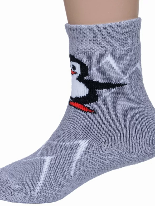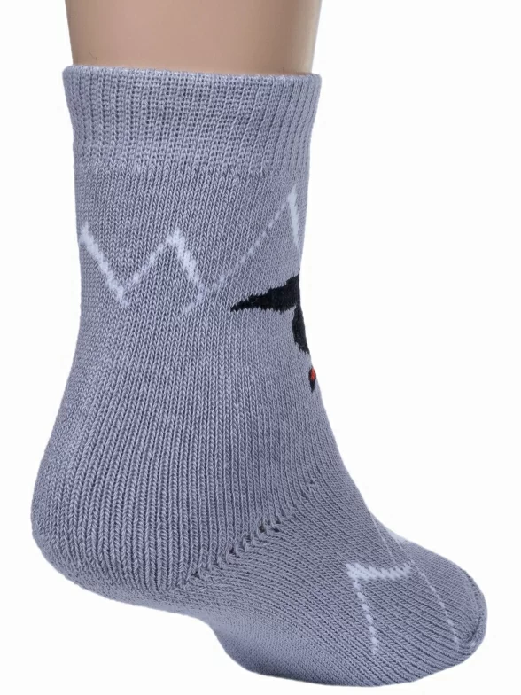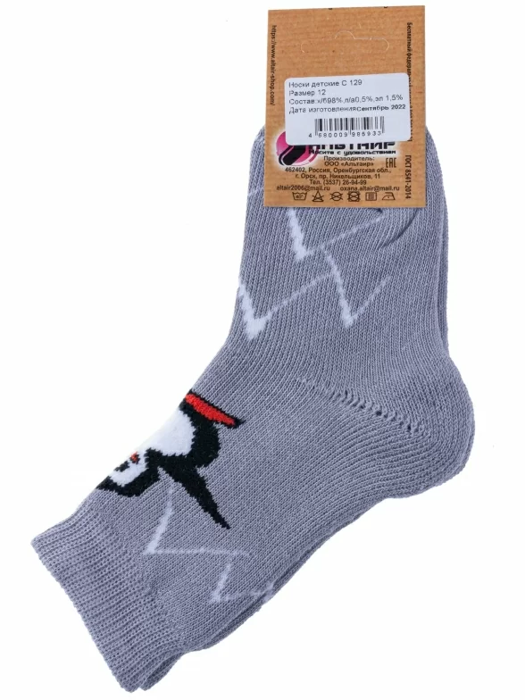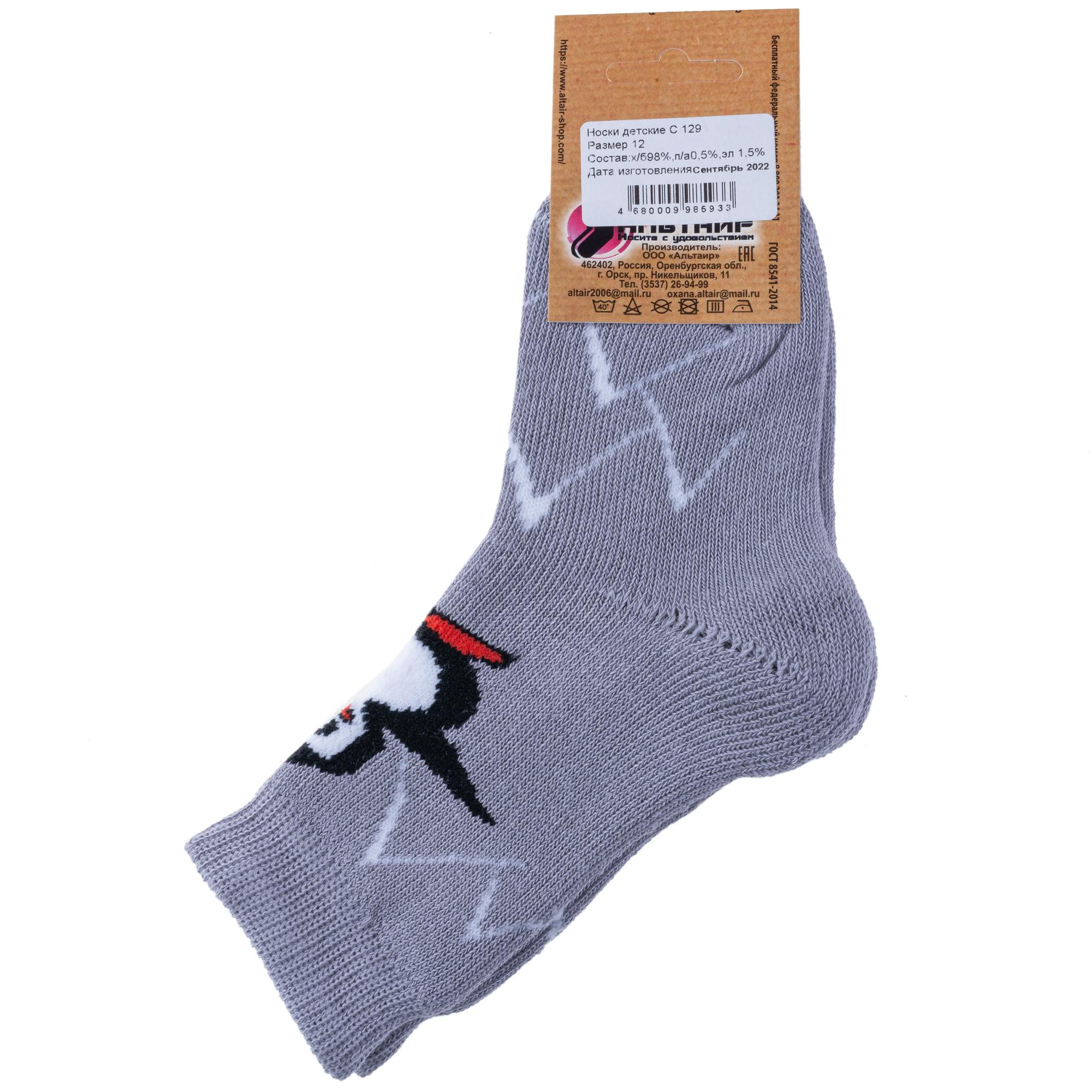 Зимние средней длины детские носки, цвет светло-серый, теплые, махровые, повседневные, шов обычный (не бесшовные), принт (рисунок): животные, с узором, состав: 98% хлопок, 0.5% полиамид, 1.5% эластан, арт. С129. Производитель «ООО Альтаир, г. Орск, Оренбургская обл, Россия» под брендом «Альтаир».
